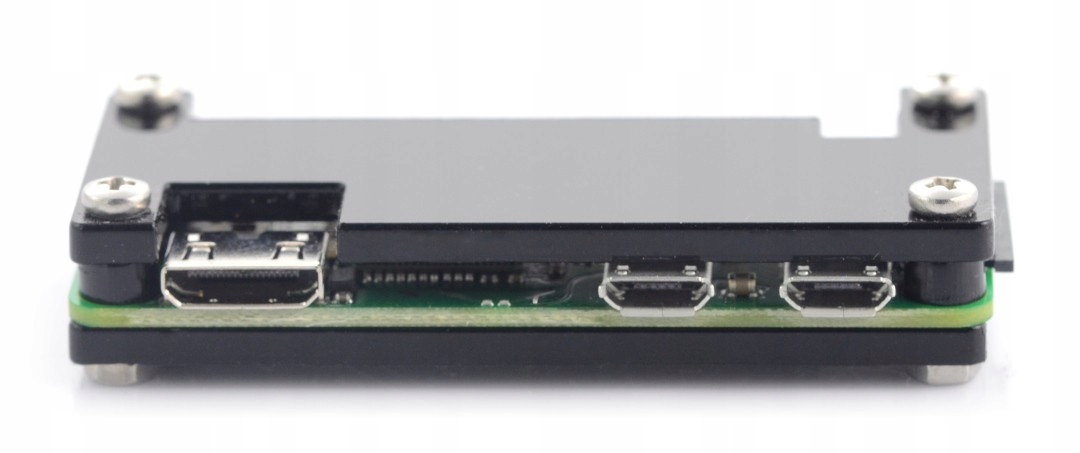 Чёрный корпус для миникомпьютера Raspberry Pi Zero внешними размерами 65 х 30 х 15 мм.