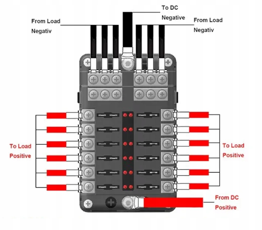 ✅ Универсальный 12-контактный блок предохранителей + шина заземления.