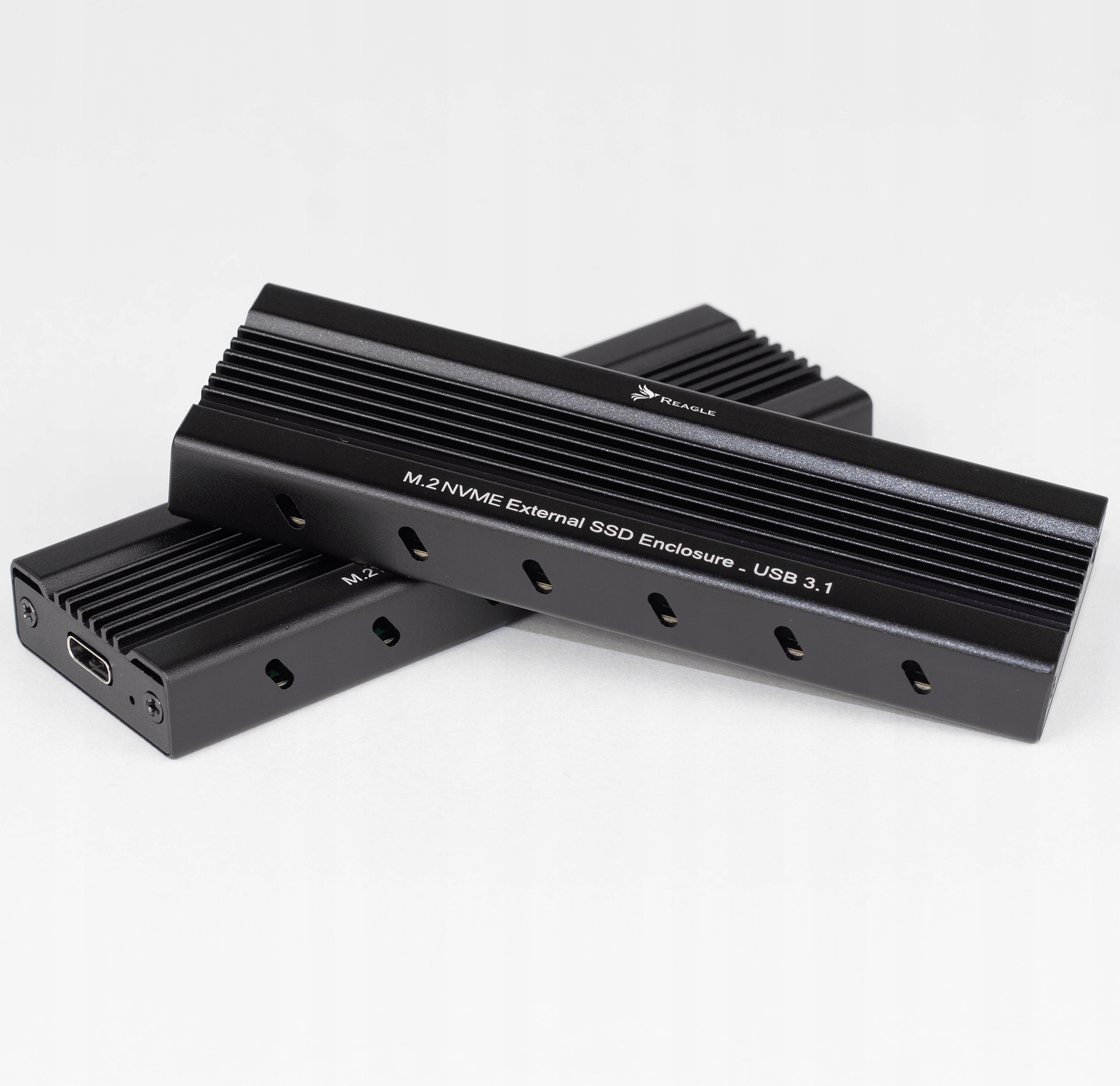 Корпус Reagle изготовлен из алюминия и имеет отверстия для обеспечения циркуляции воздуха. Его прочная конструкция эффективно защищает диск от повреждений. Специальная теплопроводящая лента, входящая в комплект, снижает температуру диска. Небольшой размер корпуса позволяет брать его с собой в дорогу, он занимает очень мало места и легко помещается в рюкзак или женскую сумочку.
