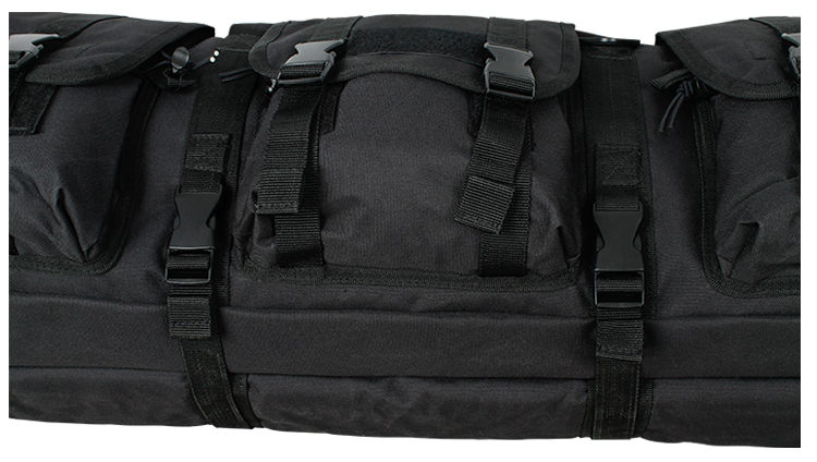 Большой винтовочный отсек имеет внутреннюю систему крепления, застегивающуюся на липучке, которая предотвращает перемещение оружия. Внешние стенки заполнены толстым и жестким пенопластом, защищающим оружие от повреждений при транспортировке и предотвращающим искажение прицелов и оптики.