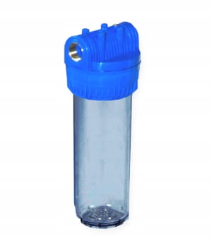 - Трубчатый корпус КП-10 состоит из головки (с латунной резьбой) и абажура. Крышка корпуса прозрачная, что позволяет контролировать степень загрязнения вставки. На головке корпуса имеется перепускной клапан, позволяющий заменить картридж без закрытия подачи воды в установку