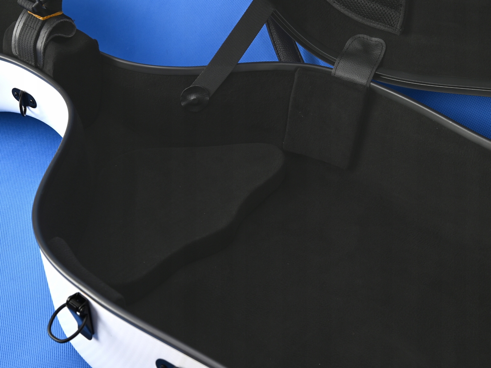Кроме того, стены имеют слой теплоизоляции. Он доступен в широком диапазоне цветов и нескольких видов внешней поверхности. Предлагаемый корпус виолончели на рынке отличается тем фактом, что он оснащен шеститочечной системой крепления. Это делает корпус с инструментом, который носят на задней панели более стабильный, и кажется еще легче. Как и другие ячейки для виолончели, эта также обладает способностью перекатывать его на колесах на тротуаре. Поверхность виолончели, покрытой слоем поликарбоната, делает его менее чувствительной к незначительному механическому повреждению, чем ламинаты из стекловолокна или углеродного волокна. Однако, чтобы сохранить красивую блестящую поверхность, у пользователя требуется забота о использованном чехле.