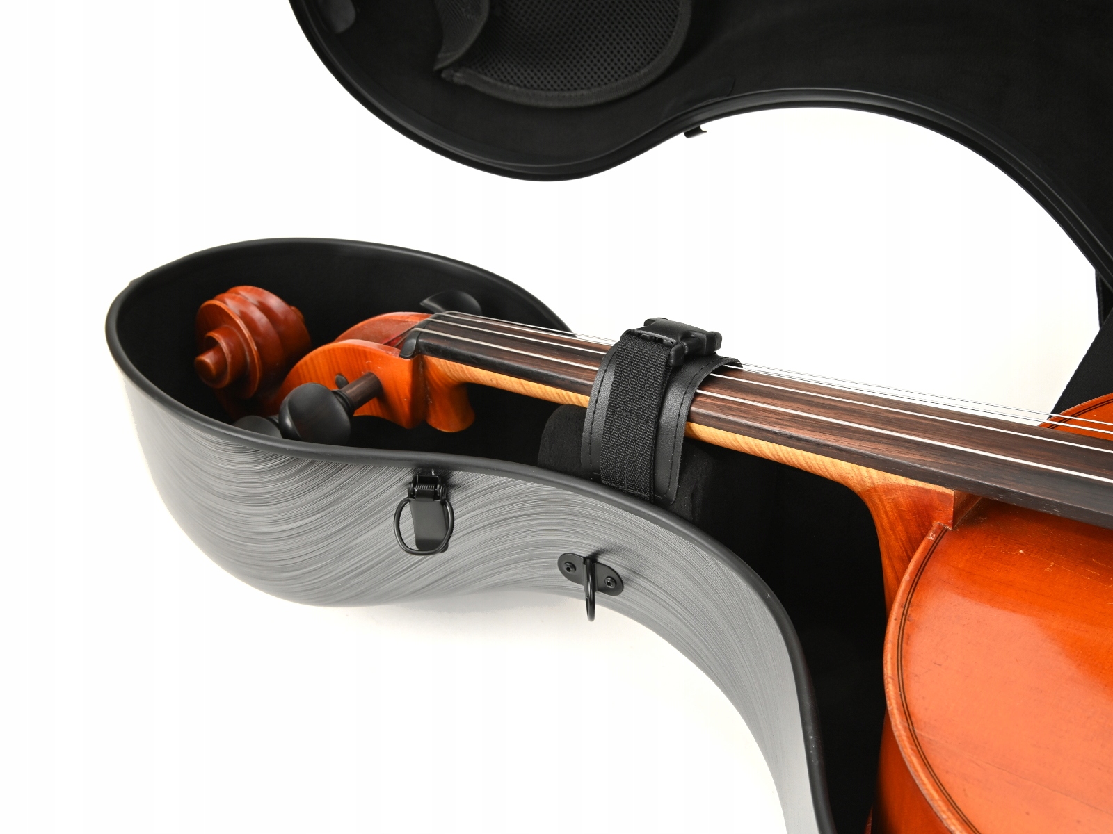 czeilonce, изготовленный из поликарбоната и ABS, легче, чем корпусы из стекловолокна, и дешевле, чем углеродные волокны. Полем Он доступен в широком диапазоне цветов и нескольких видов внешней поверхности. Предлагаемый корпус виолончели на рынке отличается тем фактом, что он оснащен шеститочечной системой крепления. Это делает корпус с инструментом, который носят на задней панели более стабильный, и кажется еще легче. Как и другие ячейки для виолончели, эта также обладает способностью перекатывать его на колесах на тротуаре. Поверхность виолончели, покрытой слоем поликарбоната, делает его менее чувствительной к незначительному механическому повреждению, чем ламинаты из стекловолокна или углеродного волокна. Однако для того, чтобы сохранить красивую блестящую поверхность, от пользователя требуется забота о использованном чехле