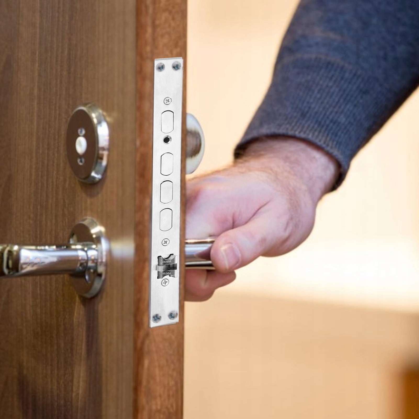 1. Прочная стальная конструкция: изготовлен из нержавеющей стали с 2 отверстиями и размерами 24 x 240 x 90 мм. Корпус замка чрезвычайно прочный, устойчивый к ржавчине, долговечный и надежный.