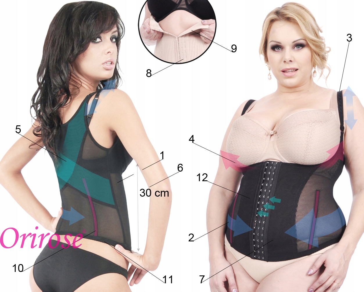 9) Полное открытие брюшной части облегчает надевание утягивающего корсета.
