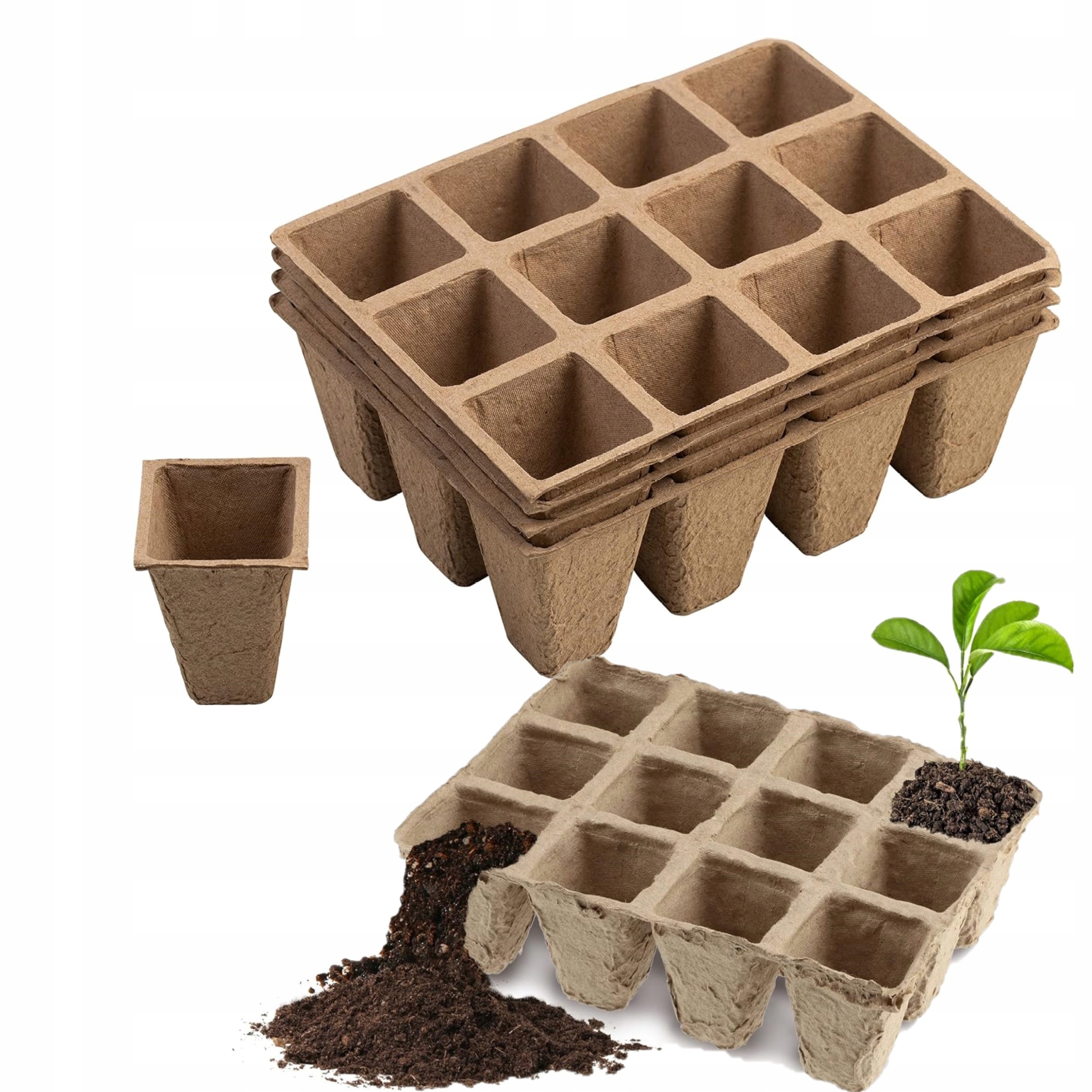 Торфяные горшки, биоразлагаемые для саженцев для саженцев 4 подноса 48
