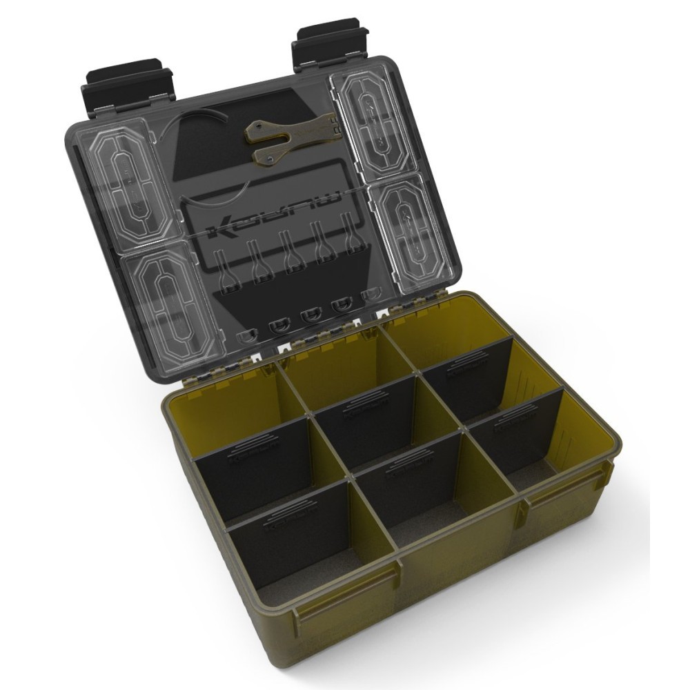 Korum Tackle BLOX – новая идея для хранения рыболовного снаряжения, ориентированная на рыболовов-универсалов. Создан для того, чтобы разместить все необходимое в одном, хорошо организованном месте. Мы тщательно подобрали размер BLOX, чтобы вместить необходимые рыболовные снасти, такие как катушки с леской, пакеты крючков и аксессуары. Если вам нужны отделения, вы можете использовать специальную коробку BITS BLOX и разместить в крышке мелкие аксессуары. Инструменты для наживки и ножницы легко положить на место, а основной ящик можно отрегулировать в соответствии с вашими потребностями с помощью отделений. При желании в него также можно поставить RIG BLOX, который защищает всех лидеров от неблагоприятных погодных условий. Все в одной коробке!