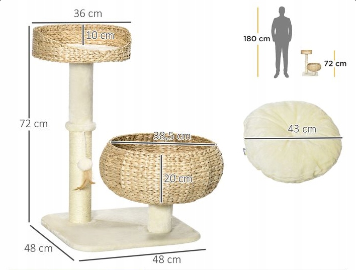 Две прочные когтеточки также помогают вашей кошке свободно выражать свой инстинкт царапания и оставлять мебель на своем месте. . душевное спокойствие.