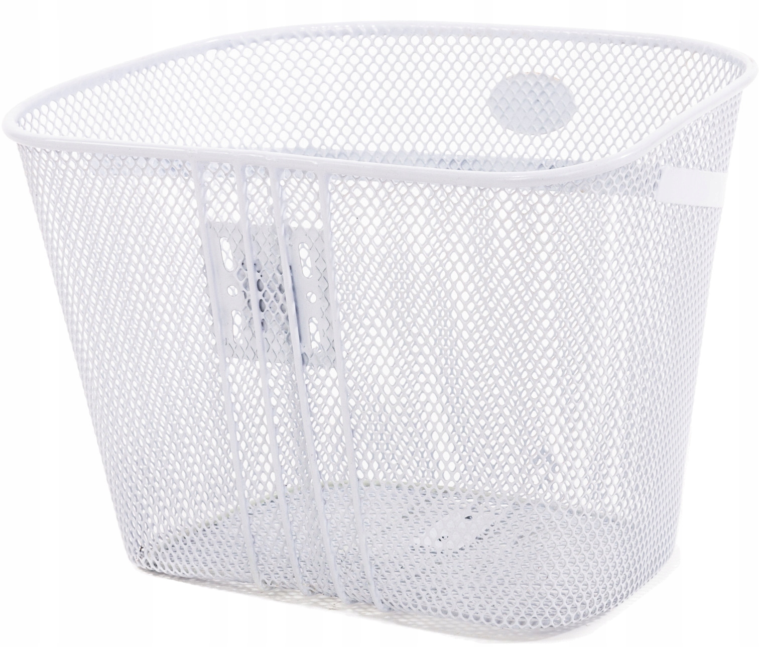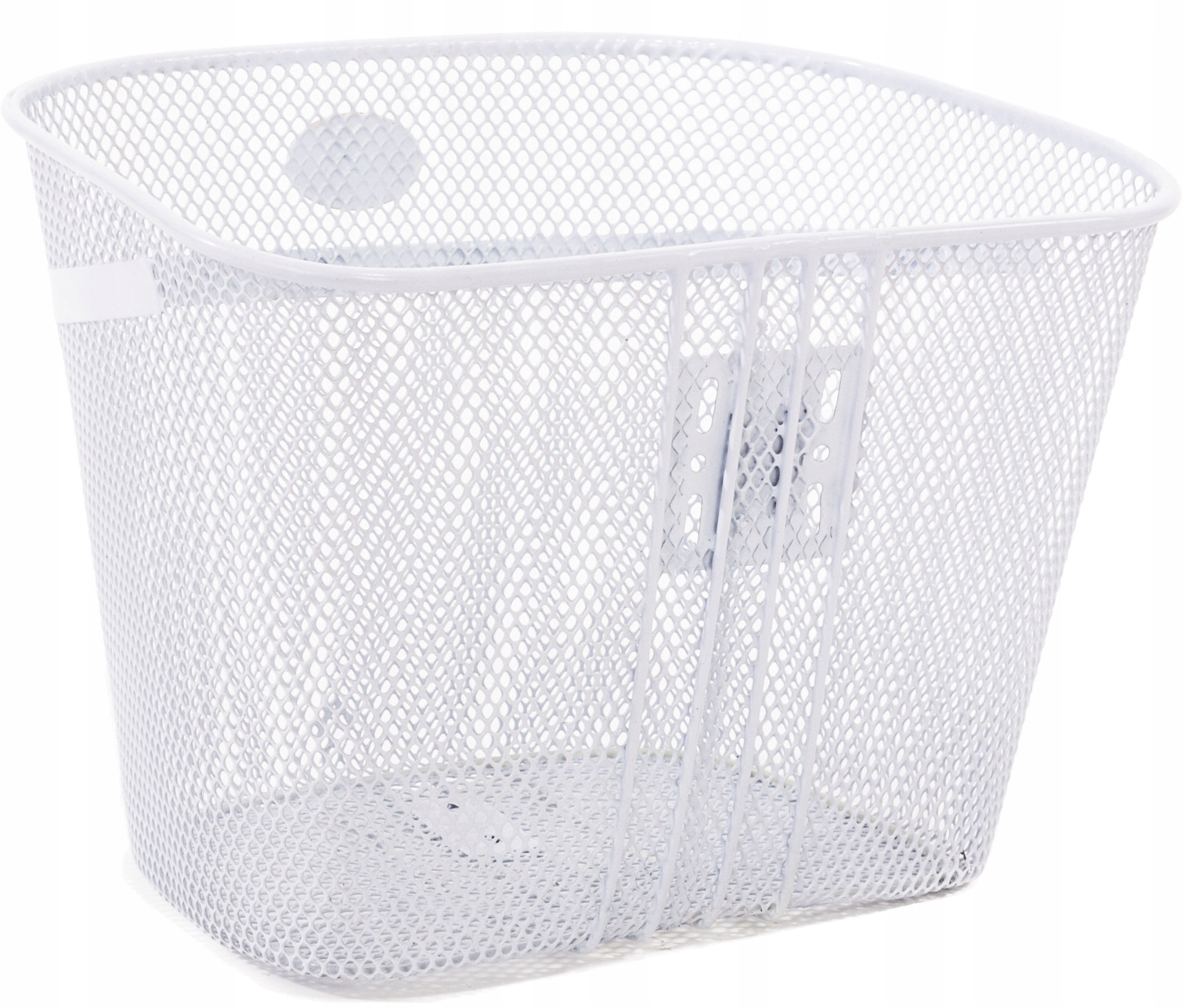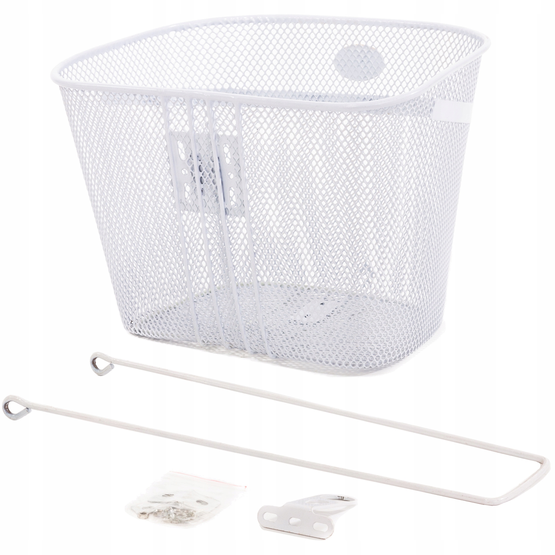 Универсальная корзина, предназначенная для постоянного крепления к рулю велосипеда с нижним кронштейном, прикрепленным к оси колеса. Изготовлен из стальной сетки, покрыт белой эмалью, дно усилено стальными стержнями, закреплено на держателе под подшипником рулевого колеса с держателем 25,4 мм (1"). р>