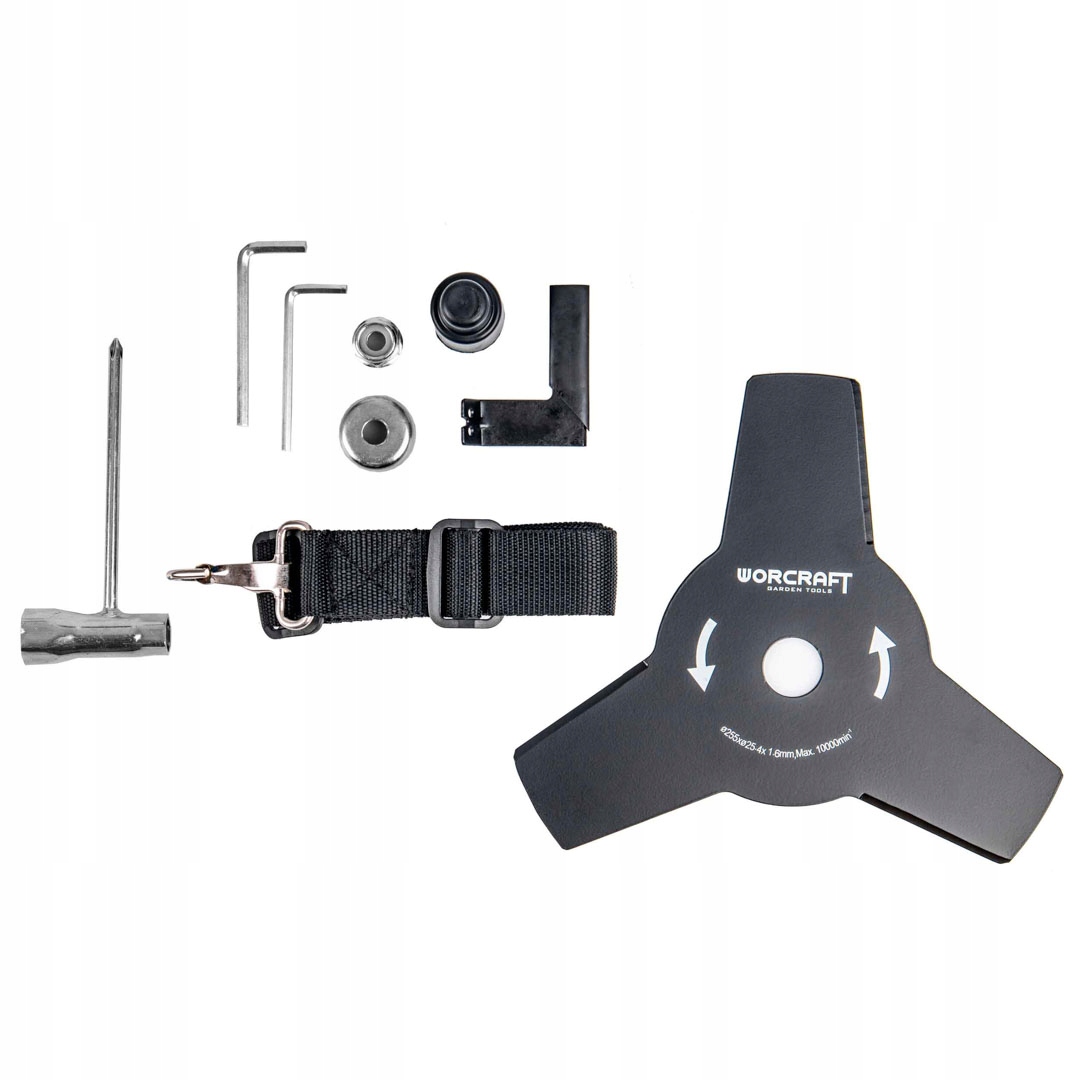 включала в себя головку с линией рыбалки (для травы и сорняков) и диск с тремя кистями (для кустарников, ветвей с меньшим диаметром). Это дает вам возможность адаптировать инструмент к конкретной работе в саду.