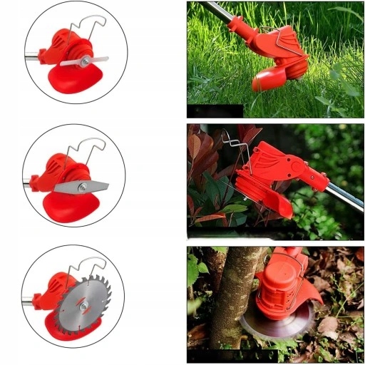 Косилка идеально подходит для работы на различных поверхностях: пластиковый нож для мягкой травы, нож из нержавеющей стали для газона, сорняков и небольших кустов, а также циркулярная пила из марганцевой стали для более густой травы, кустов и ветвей.