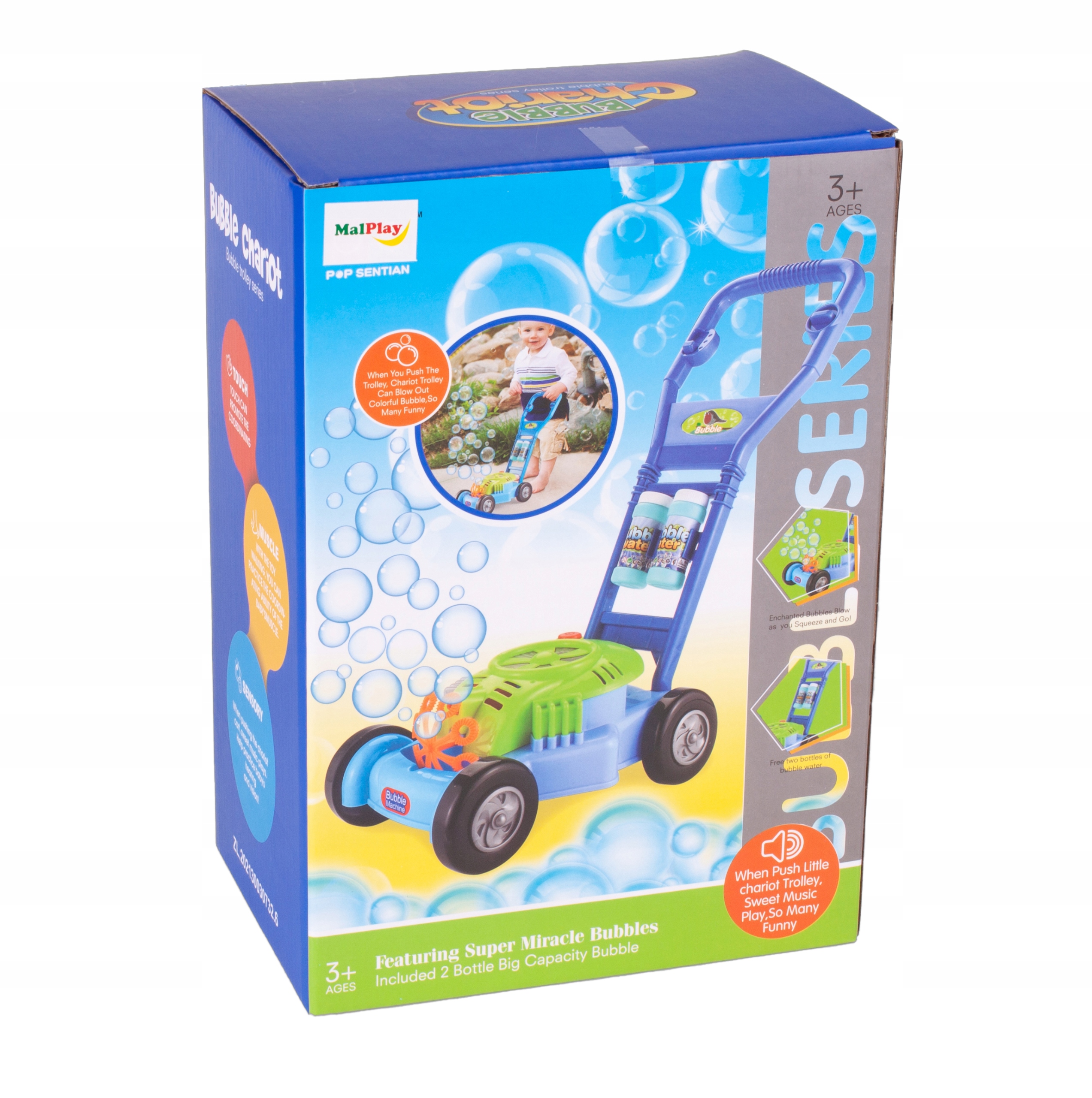Нажимая игрушку, мы услышим веселые мелодии и увидим плавающие мыльные пузыри.