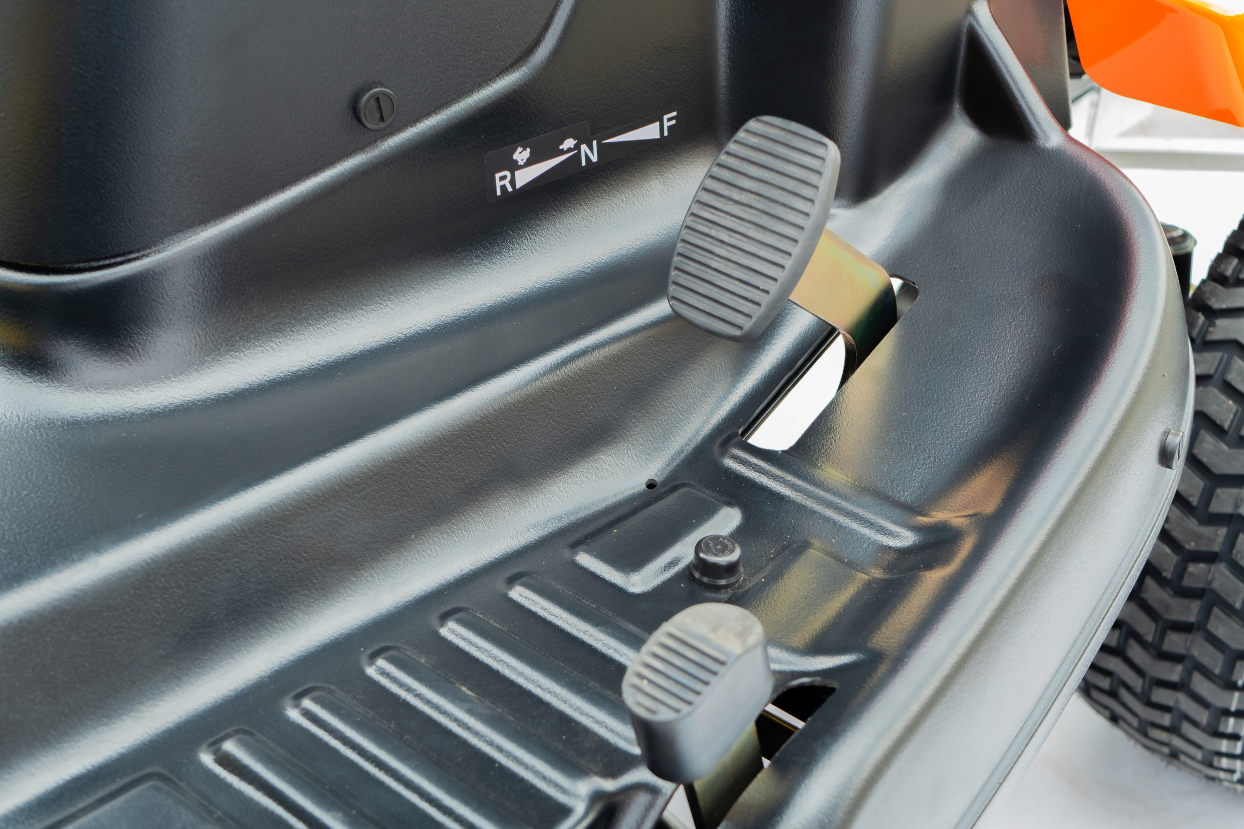 - Гидростатическая трансмиссия Hydro Gear активируется педалью без необходимости отрывать руки от руля, обеспечивая больший контроль над машиной и безопасность.