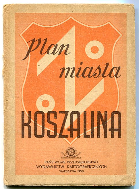 Карта города КОШАЛИНЫ ::: один из первых планов Кошалина на польском языке, сложенный и вклеенный в картонную обложку, на обороте список улиц и наиболее важных мест. в городе