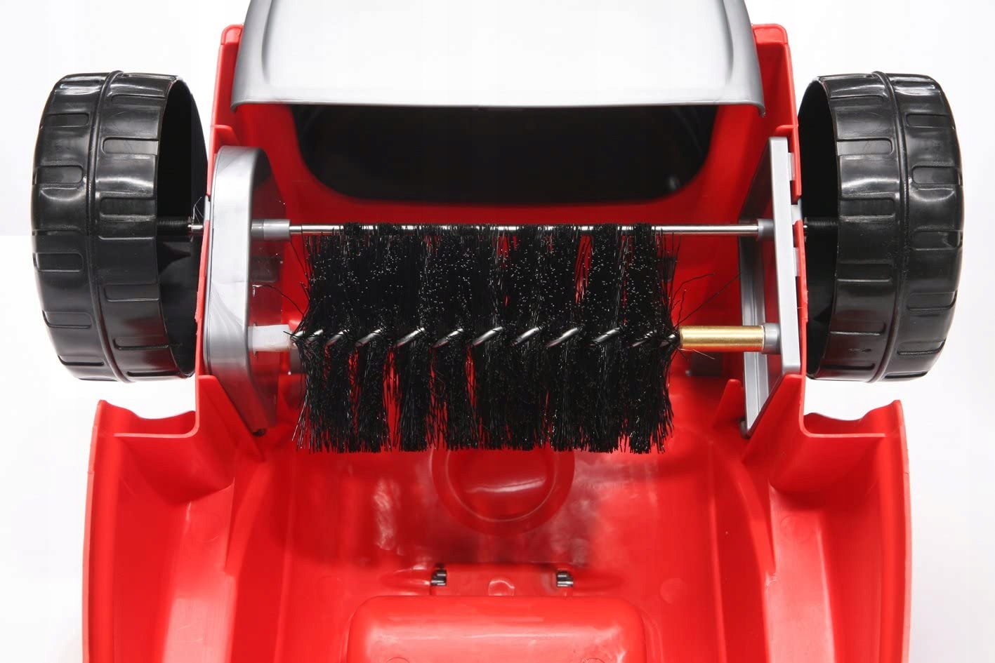 Игрушка имеет механизм, имитирующий настоящие звуки скашивания травы. Кроме того, он оснащен щетками для сбора мусора, большой корзиной и небольшим отделением для хранения.