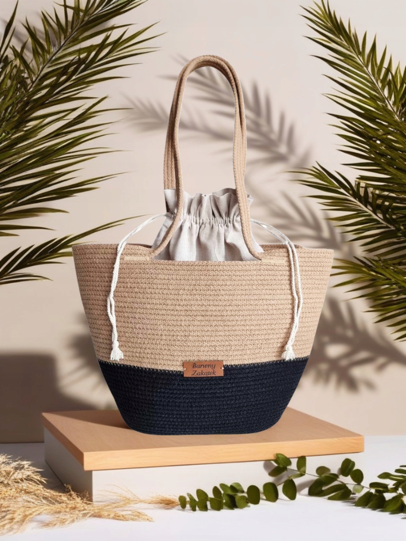 Добавьте немного минимализма бохо в свой гардероб! Этот уникальный мешок с городской корзиной был сшит из хлопковой струны в теплом оттенке печенья с контрастным черным акцентом. Оснащен практической сумкой, которую можно легко удалить, что дает ему уникальную функциональность и позволяет экспериментировать с различными стилями. дизайн. Идеально подходит для прогулки, он хорошо вписывается в различные стилизации.