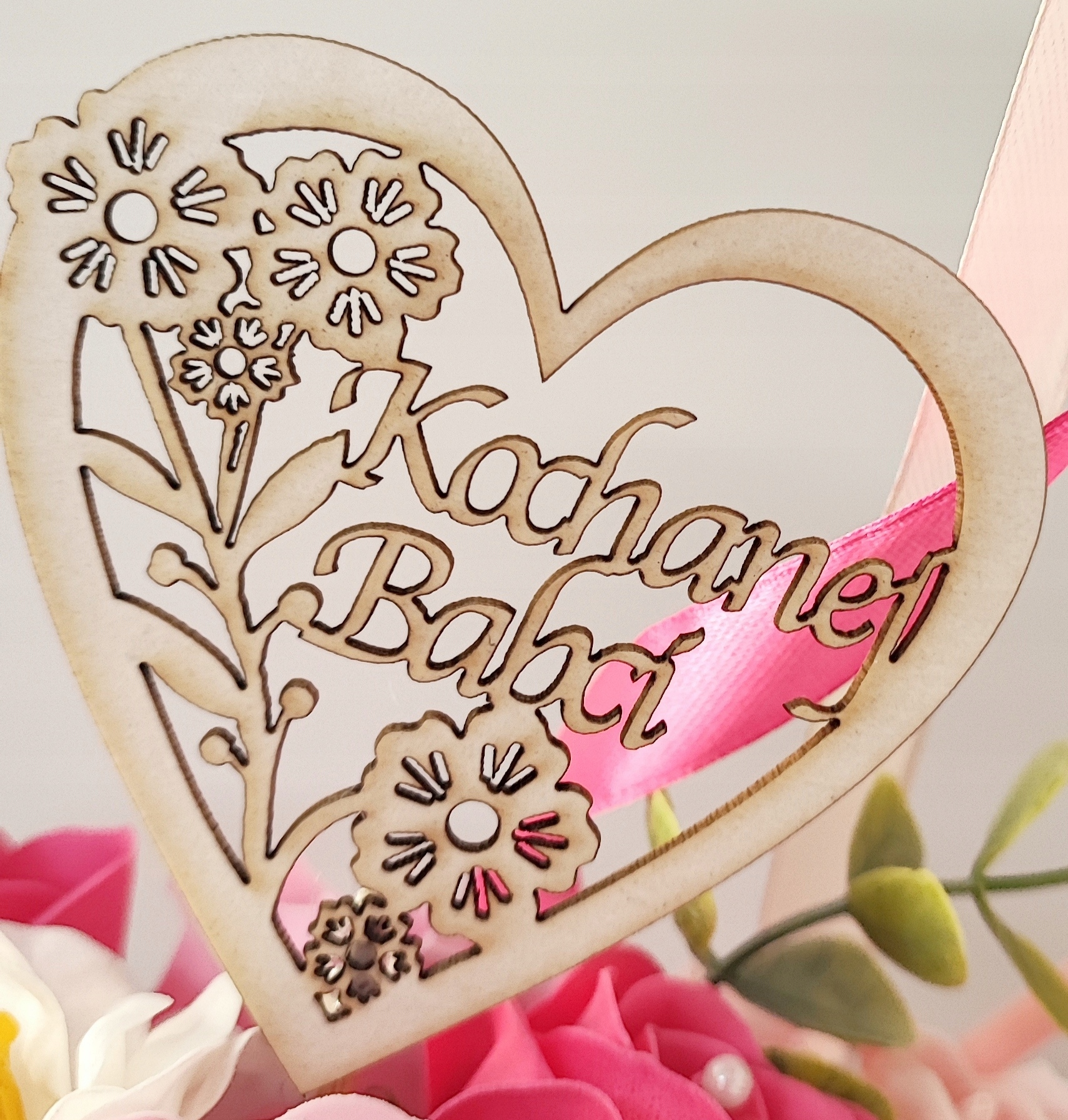 В комплекте корзины с козырьком в форме сердца с надписью «Дорогая бабушка».