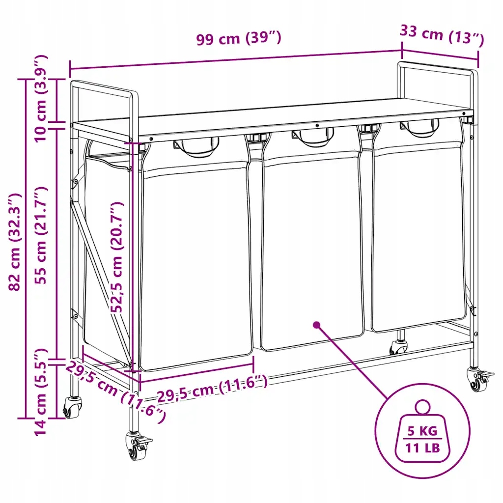 Корзина для стирки - это просторное и удобное решение для хранения. У него есть убирающиеся сумки и колеса, благодаря тому, что заказ и ношение прачечной не вызывают никаких проблем.