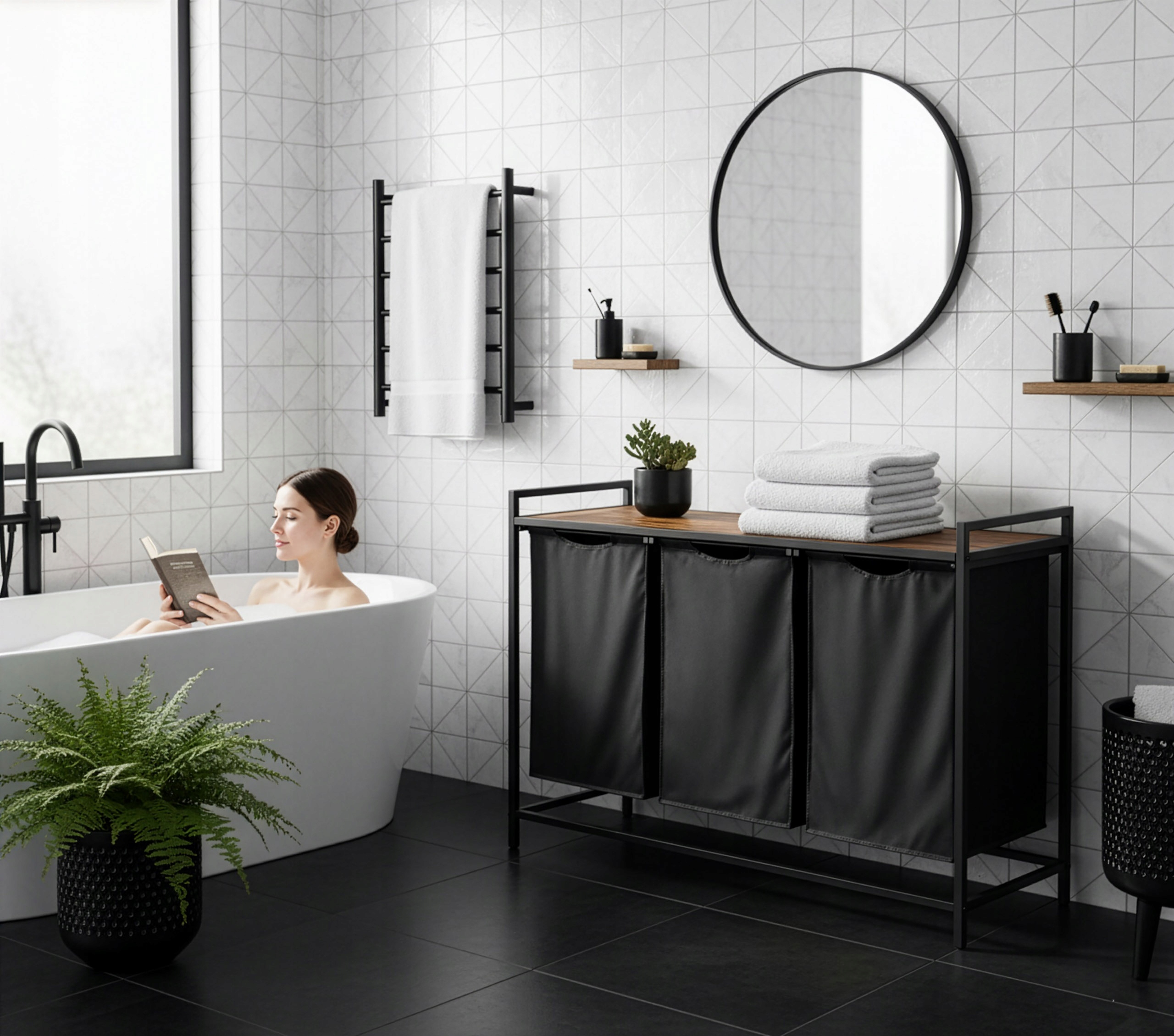 Корзина для белья Artus с тремя отделениями – идеальное решение для людей, которые ценят порядок и функциональность в пространстве ванной комнаты. Его лофт, индустриальный дизайн идеально вписывается в современные интерьеры, предлагая при этом максимальный комфорт и экономию пространства. Три отдельные камеры обеспечивают точное разделение белья, что упрощает организацию повседневных задач. Кроме того, практичная полка над корзинами станет идеальным местом для полотенец и аксессуаров для ванной комнаты. С корзиной Artus вы не только улучшите эстетику своей ванной комнаты, но и повысите ее функциональность.