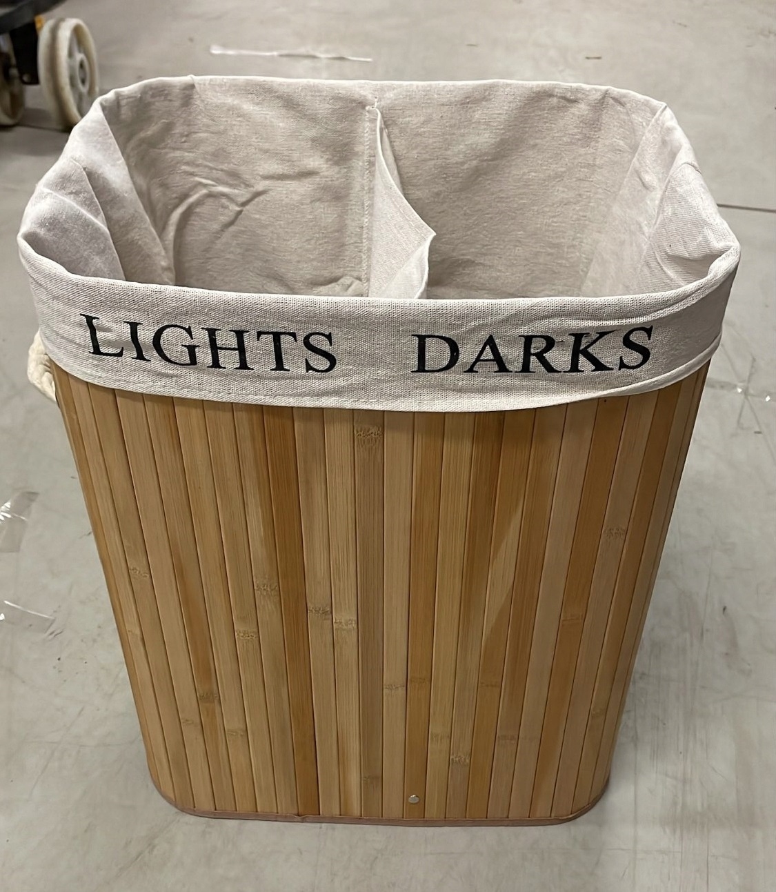 Кошик для білизни бамбуковий 2 відділення LARGE 80л (W013)
