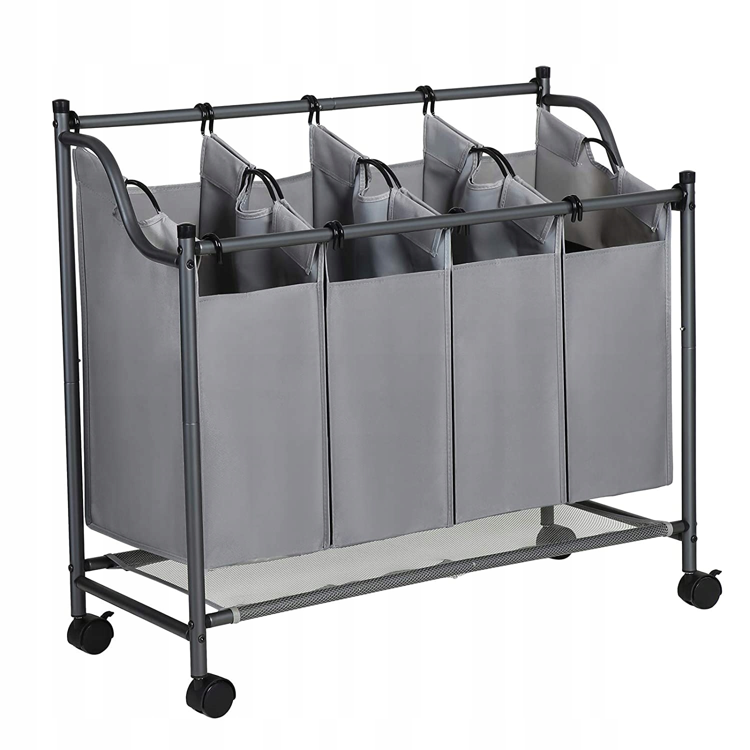 КОРЗИНА ДЛЯ БЕЛЬЯ СОРТИРОВКА НА КОЛЕСАХ, СЕРАЯ, 4 ОТДЕЛЕНИЯ