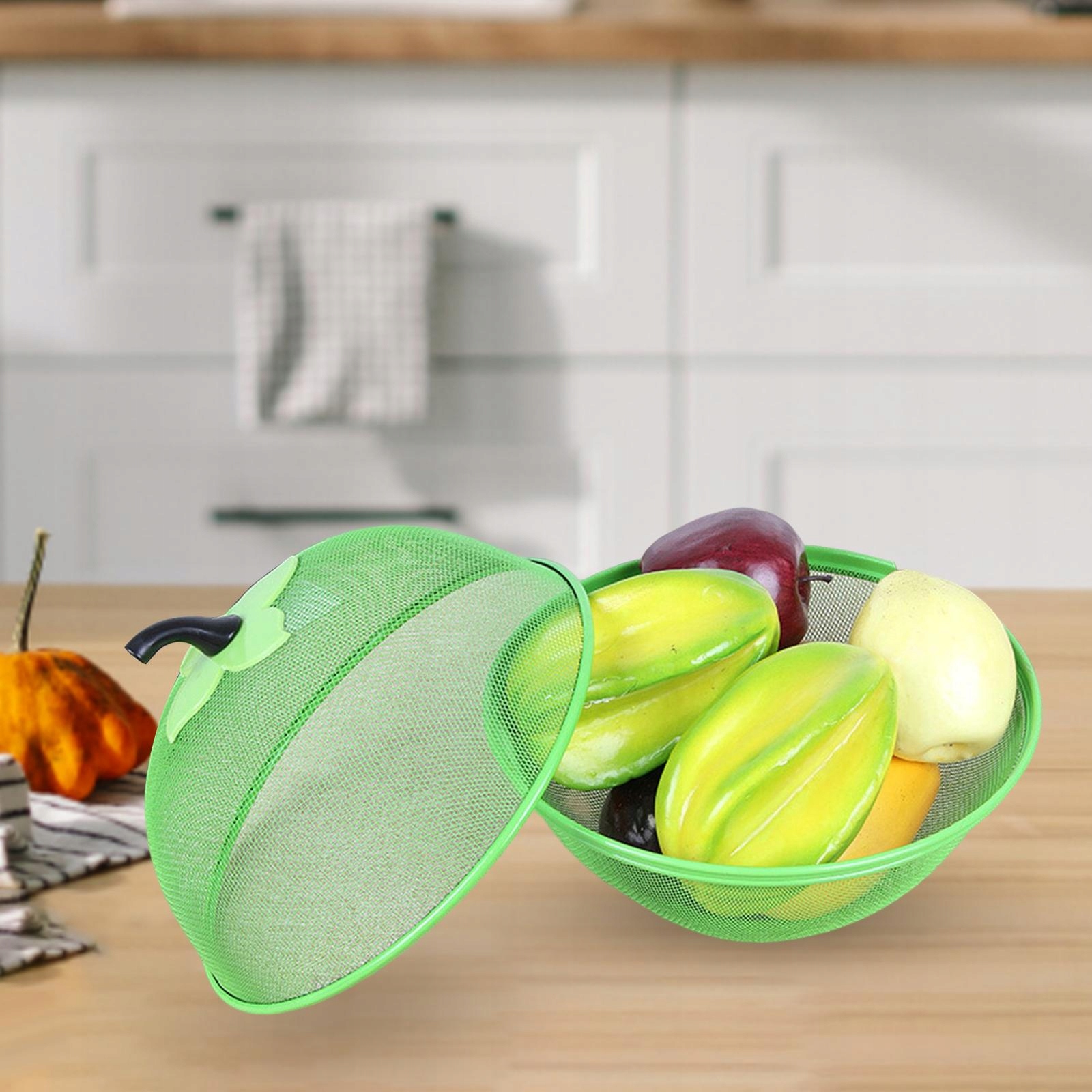 ДИЗАЙН С КРЫШКОЙ: Декоративная сетчатая корзина — идеальный способ хранить свежие фрукты круглый год. Двухсекционная корзина с ручками закрывает фрукты и предотвращает удары. Пользоваться удобнее.