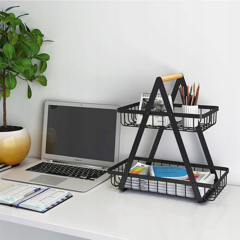 КОРЗИНА ДЛЯ ФРУКТОВ И ОВОЩЕЙ, 2-Х ЯРУСНАЯ, ЧЕРНАЯ МЕТАЛЛИЧЕСКАЯ КОРЗИНА, ОФИСНЫЙ ЛОФТ