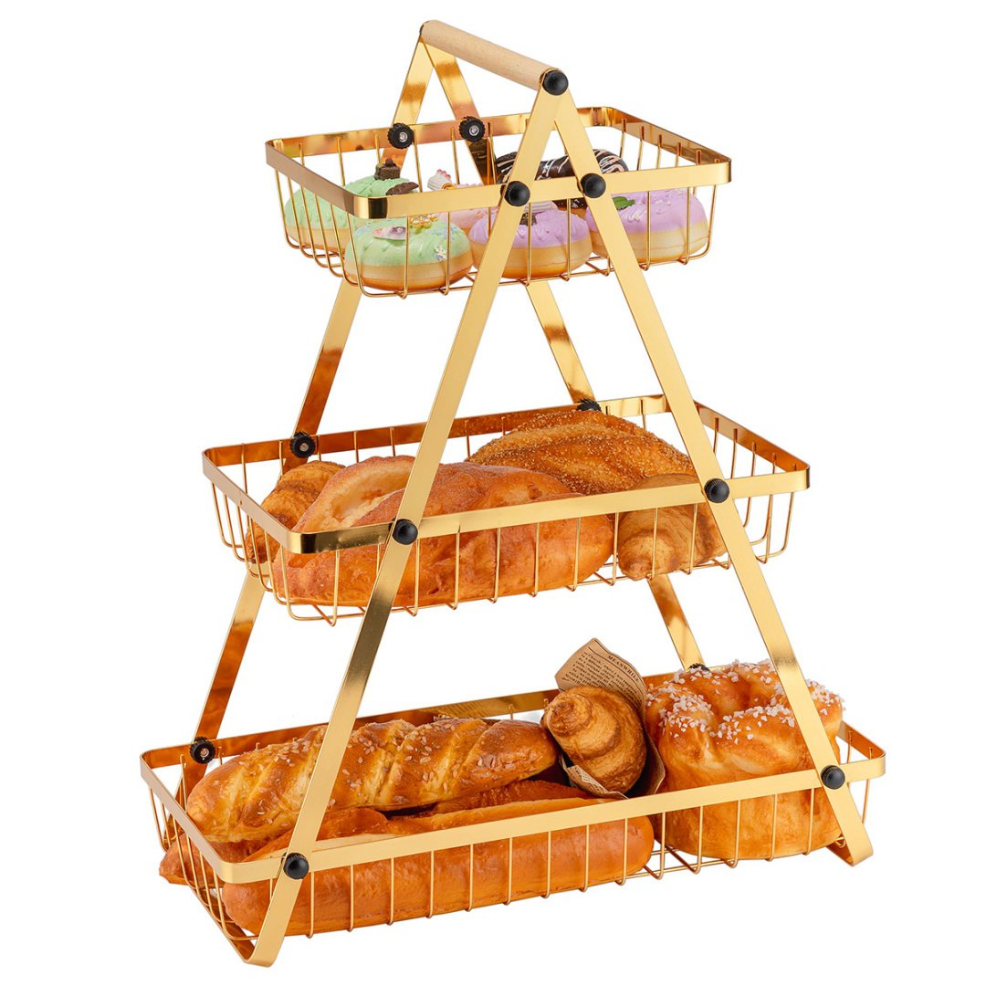 СТЕРИЛЬНАЯ КОРЗИНА ДЛЯ ФРУКТОВ И ОВОЩЕЙ МЕТАЛЛИЧЕСКАЯ КОРЗИНА, ЗОЛОТАЯ ПЛИТА, 3 УРОВНЯ