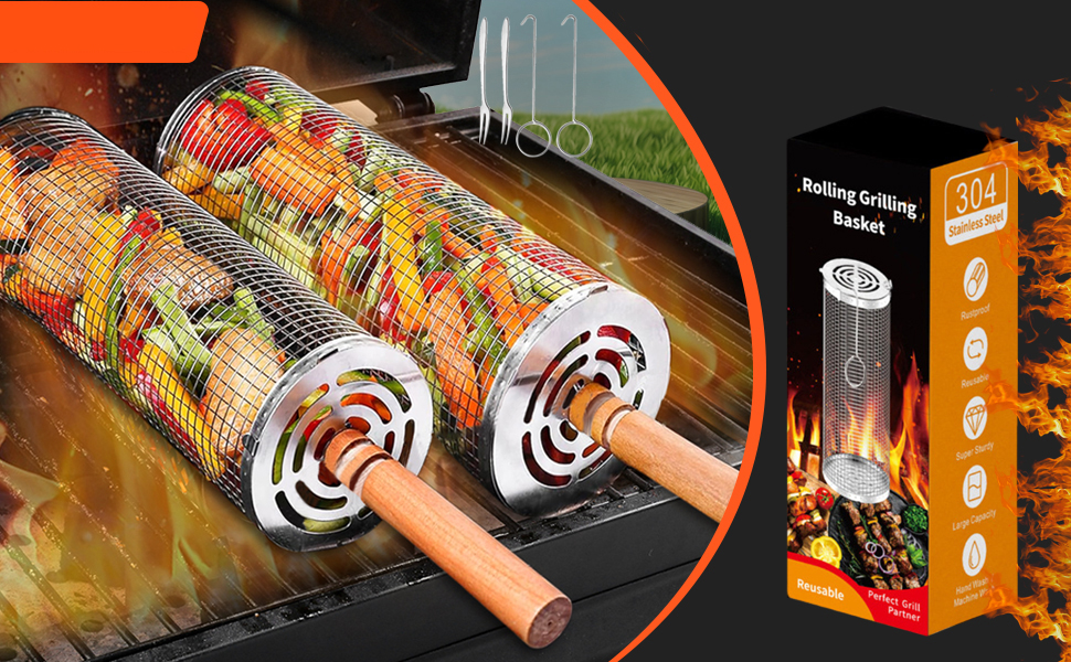 🥙 Приготовьте себя раньше: В вращающейся корзине для барбекю вы можете не только на гриле, но и хранить еду. Вы можете предварительно упаковывать еду и хранить ее в холодильнике, пока не захотите ее съесть. Благодаря этому вы можете наслаждаться вкусной жареной едой во время пикника, вечеринки или лагеря!