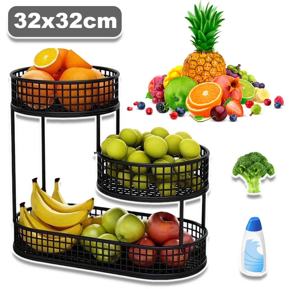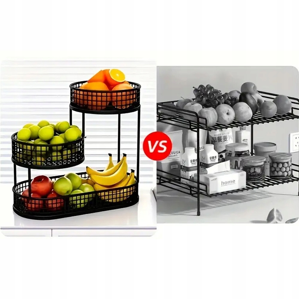 КОРЗИНА ДЛЯ ФРУКТОВ И ОВОЩЕЙ, ЧЕРНАЯ ДВУХЯРУСНАЯ МЕТАЛЛИЧЕСКАЯ ДВУХЯРУСНАЯ ПОДСТАВКА