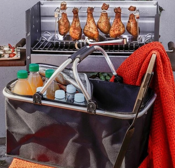 Отдыхать на природе гораздо приятнее, когда можно устроить еще и небольшой пикник. Для этого вам понадобится термокорзина, сохраняющая температуру хранящихся в ней продуктов в течение длительного времени. Наша термосумка имеет усиленную металлическую конструкцию и эргономичные ручки, поэтому ее очень удобно носить с собой. В ней можно разместить различные виды закусок, фруктов и напитков – объем корзины составляет 30 литров.