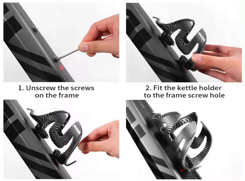 ✅Сборка чрезвычайно проста, держатель для бутылки с водой можно легко и быстро установить на раму велосипеда, что делает его идеальным решением для каждого велосипедиста, который ищет функциональный и эстетичный держатель. Все, что вам нужно сделать, это открутить 2 винта, на которых крепится ручка, поставить ручку и затянуть винты.