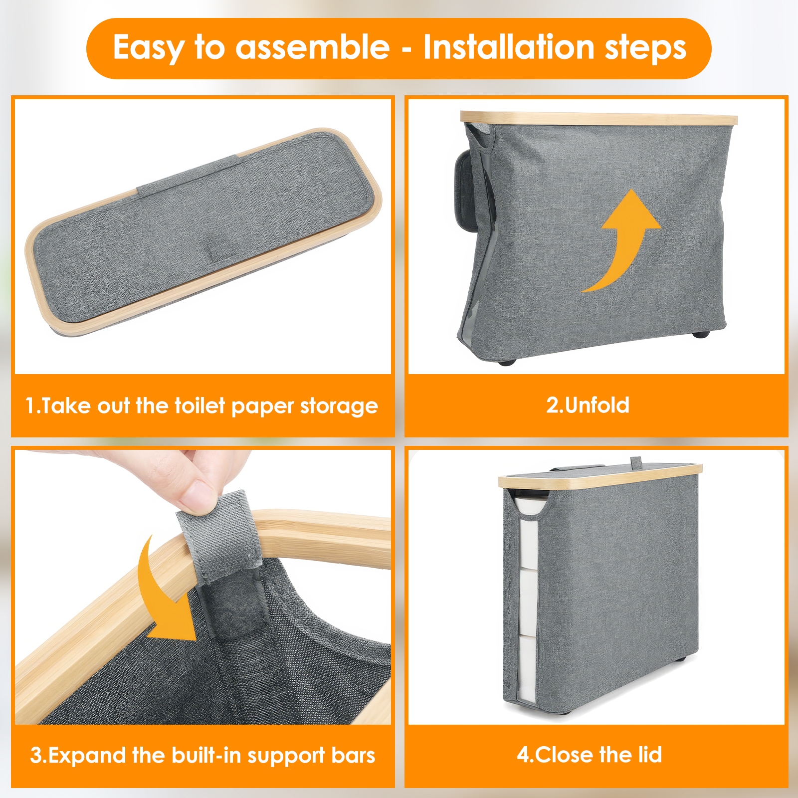 Корзина для туалетной бумаги со способной крышкой для 12 складного бамбука