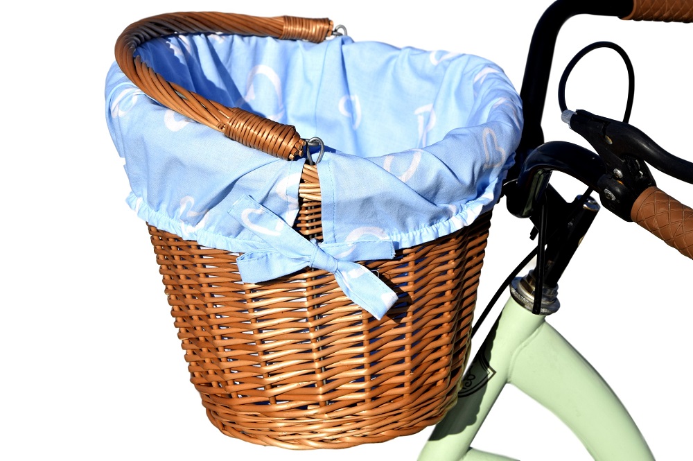Плетеная велосипедная корзина с крючками + ПОДКЛАДКА - цвет отделки на выбор (100% хлопок) - идеально подходит для велосипедных поездок, покупок, а также для перевозки собаки или кошки. Очень прочная конструкция гарантирует, что покупки будут осуществляться в безопасном и удобном положении. Корзина размещается на передней части руля с помощью изогнутых металлических стержней, защищенных специальным пластиком.