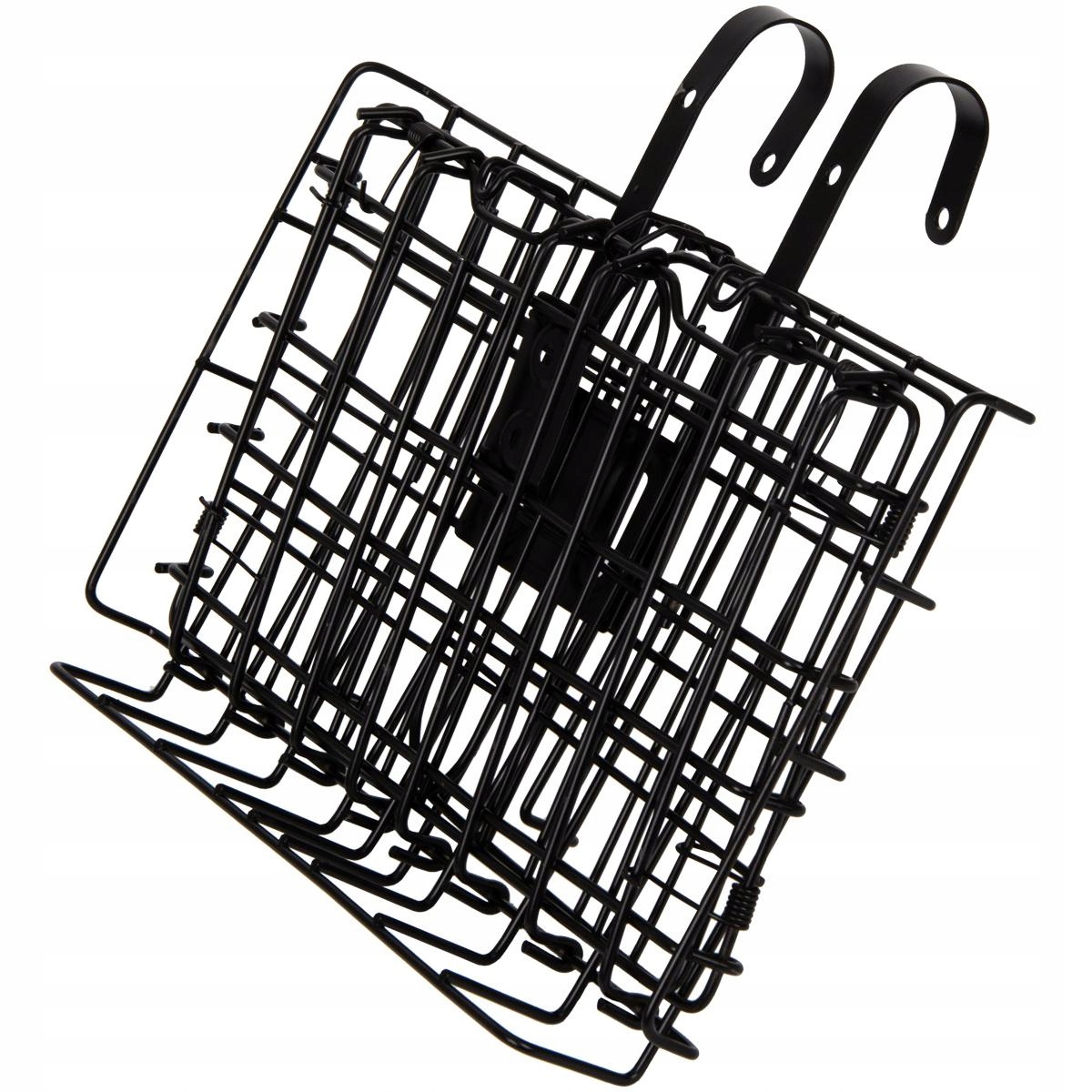 Корзина изготовлена из металла, покрыта черной краской. Благодаря пружинам его очень легко собирать и разбирать. Просто отпустите замок, и корзина откроется автоматически. В сложенном виде корзина займет очень мало места и ее будет удобно хранить.