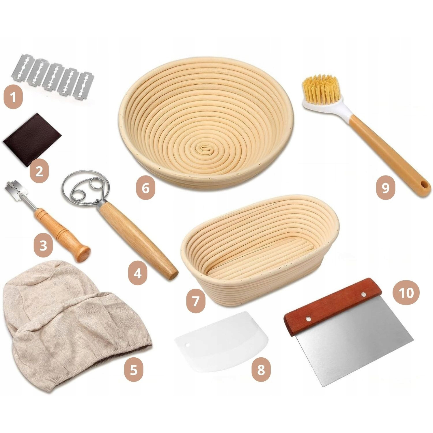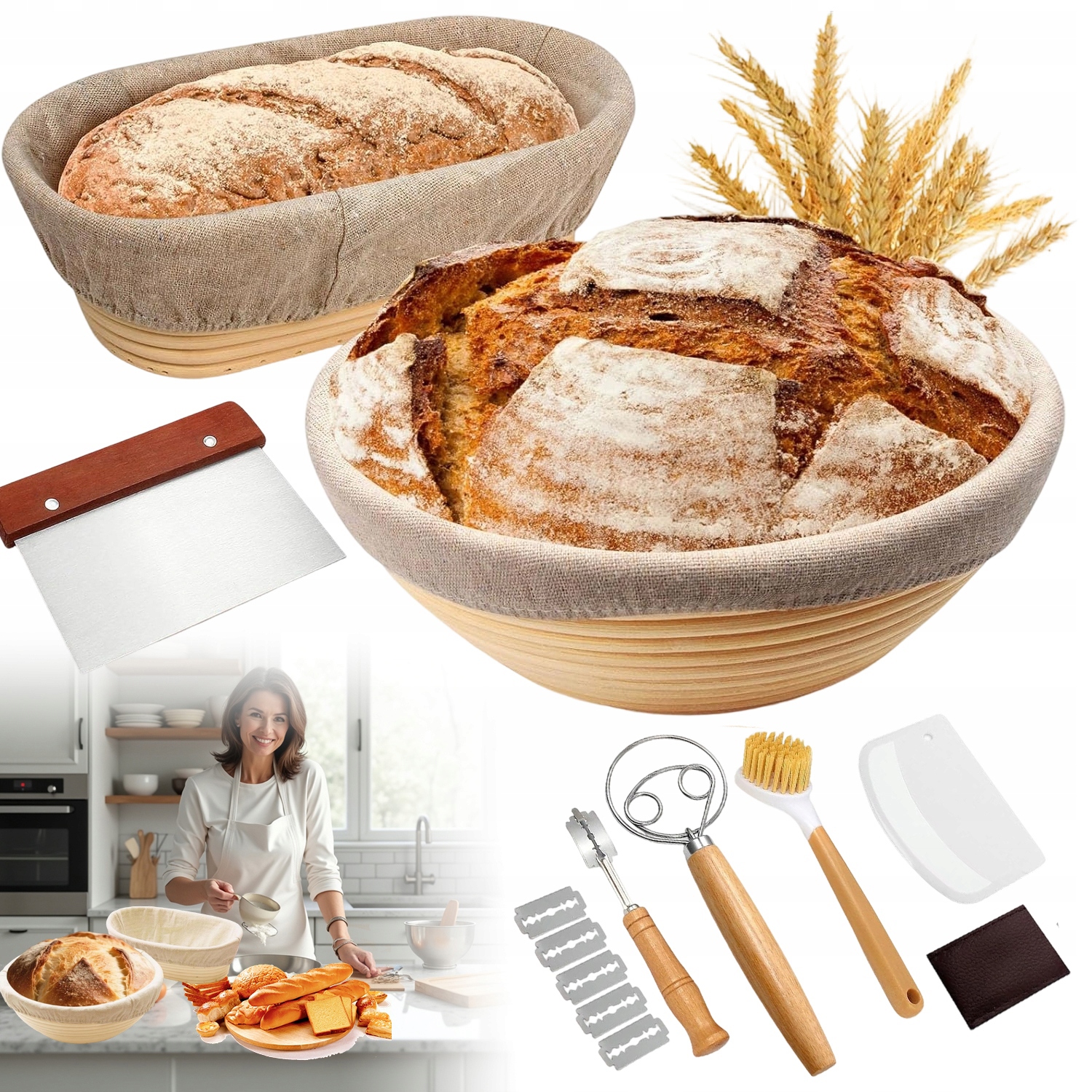💛 В комплект входит большая корзина для расстойки теста, овальная корзина для расстойки теста, полотенце для теста, качественная фольга для расстойки теста, нож для хлеба, скребок для теста, силиконовая кисточка и щетка для чистки.