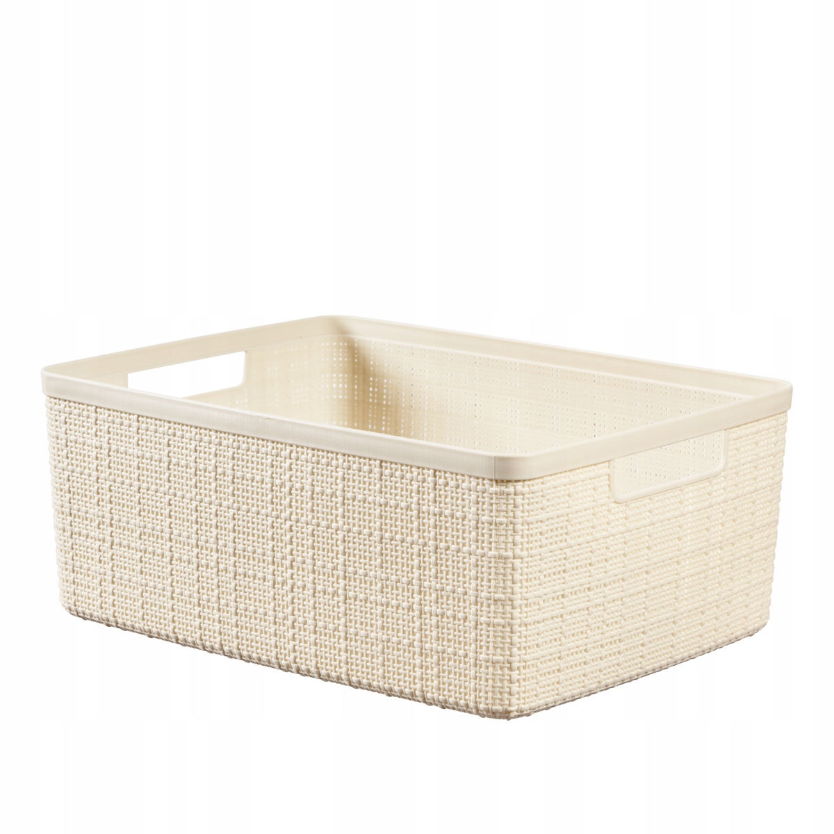 Корзина M -Jute - тонкий и элегантный инструмент для хранения. 12 -литровая емкость позволит вам скрыть много мелочей. В целом хранится кремовый цвет. Слегка украшенная отделка является дополнительным преимуществом этого продукта. Корзина не имеет закрытия, все от внутренней части хорошо видно.
