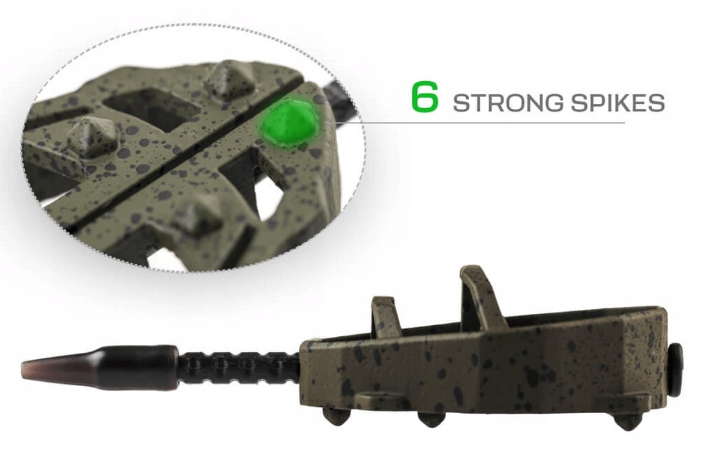 Уникальная форма Spider гарантирует идеальный баланс во время заброса и надежное положение на дне, всегда правой стороной. Новая конструкция опорной рамы обеспечивает оптимальное высвобождение приманки и защиту приманки во время заброса. В состав также входит специальная платформа для точного размещения наживки с крючком, что гарантирует идеальную подачу. Корзины-пауки позволяют быстро менять нагрузку благодаря съемной трубке и отверстию сзади. Просто вытащите трубку, ослабьте леску и замените грузик - без необходимости снова связывать весь набор.