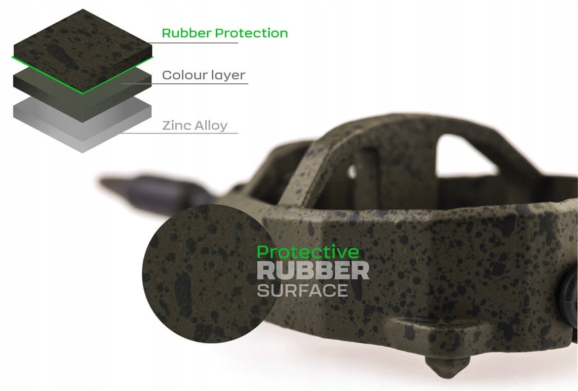 Корзины изготовлены из бессвинцового материала матово-зеленого цвета с прорезиненной отделкой с черными точками, что обеспечивает идеальную маскировку дна.