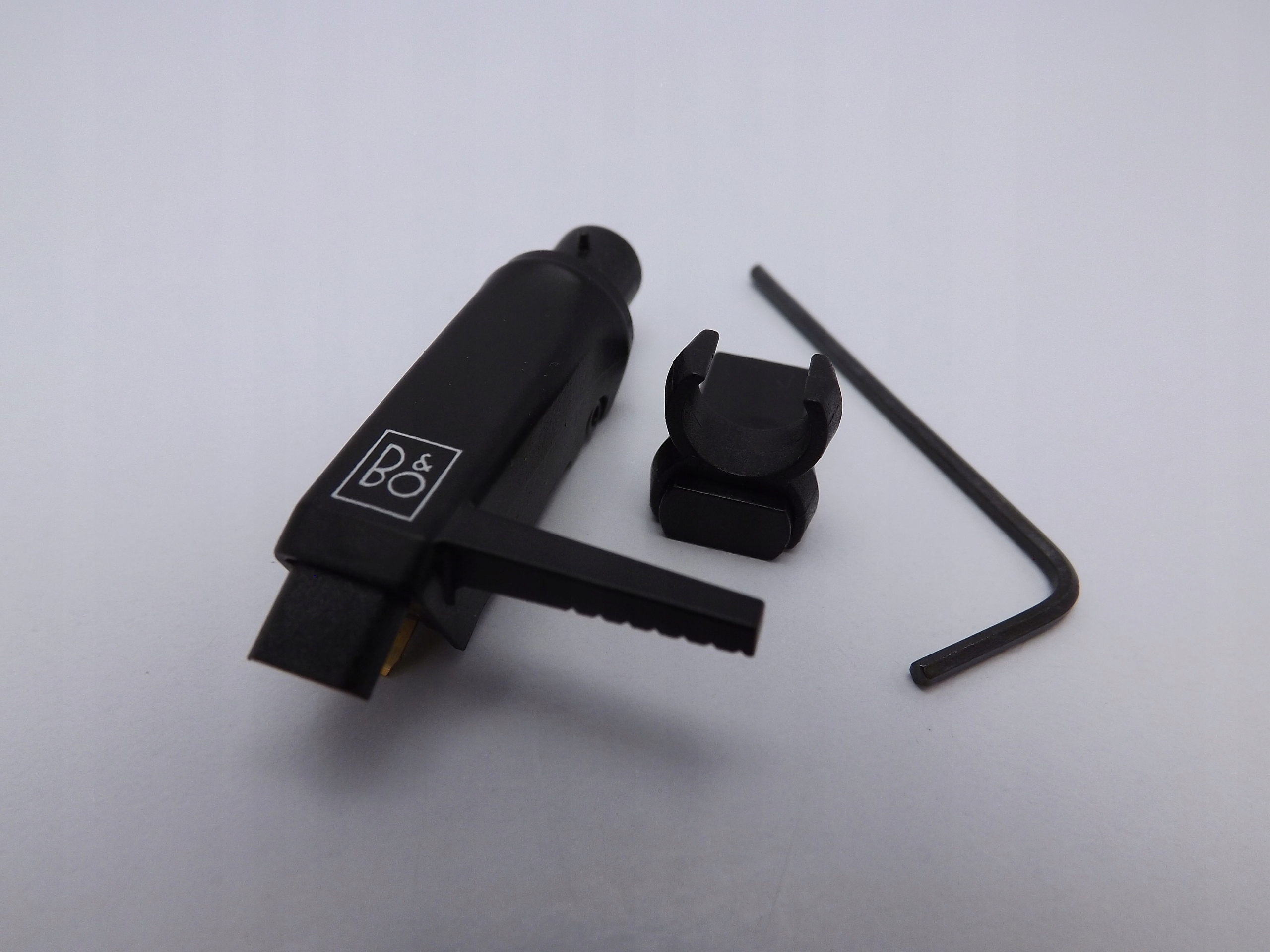 Headshell Bang & Olufsen B & O MMC. Набор состоит из адаптера Headshella, который позволяет использовать вставки B & O в руки со стандартным креплением малого и среднего веса, дополнительный вес, соответствующий правильному весу и ключ Allen. Внешнее состояние и полнота представлена на фотографиях. На мой взгляд, предмет, вероятно, никогда не использовался.