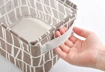 Контейнер имеет практичные ручки. по бокам, что облегчает его вытаскивание. Изготовлен из материала, напоминающего холст.