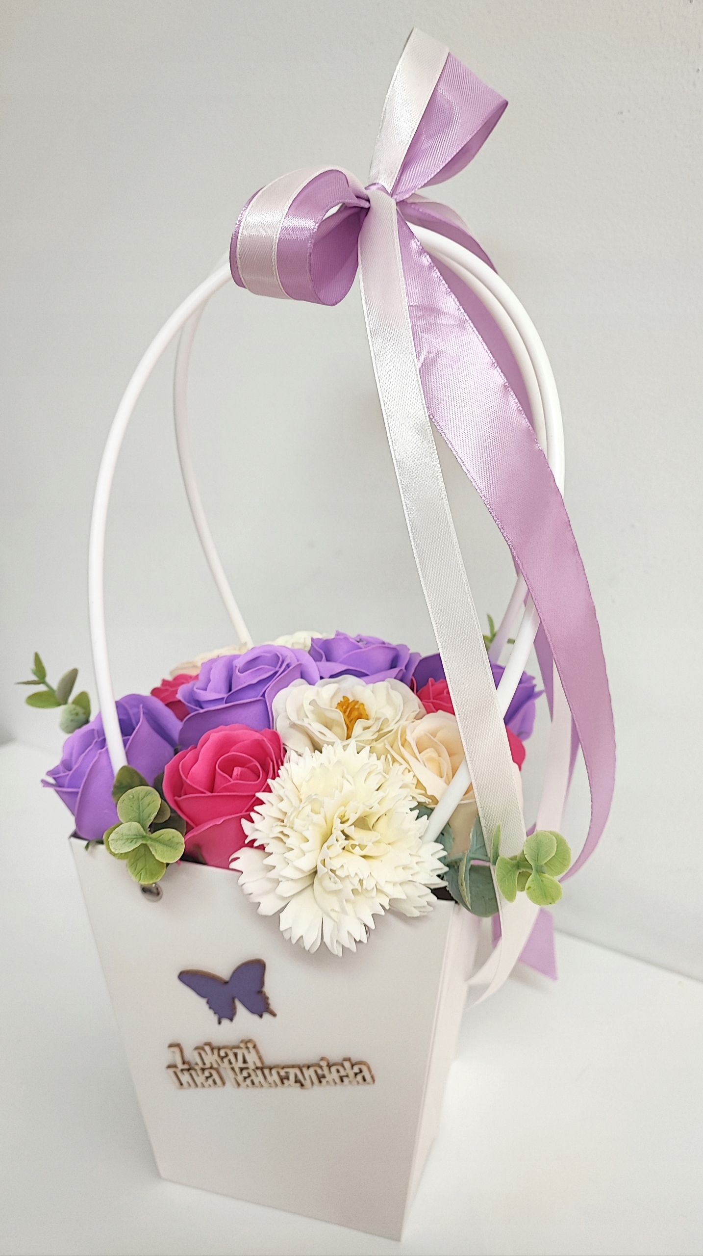 Декоративная белая коробочка в форме корзины, наполненная розами, - отличный подарок учителю ...который принесет получателю много пользы ароматной радости...