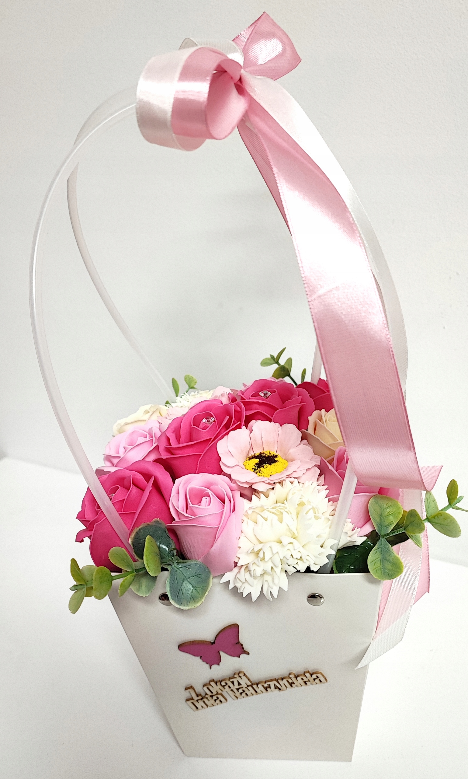 Декоративная белая коробочка в форме корзины, наполненная розами, - отличный подарок учителю ...который принесет получателю много пользы ароматной радости...