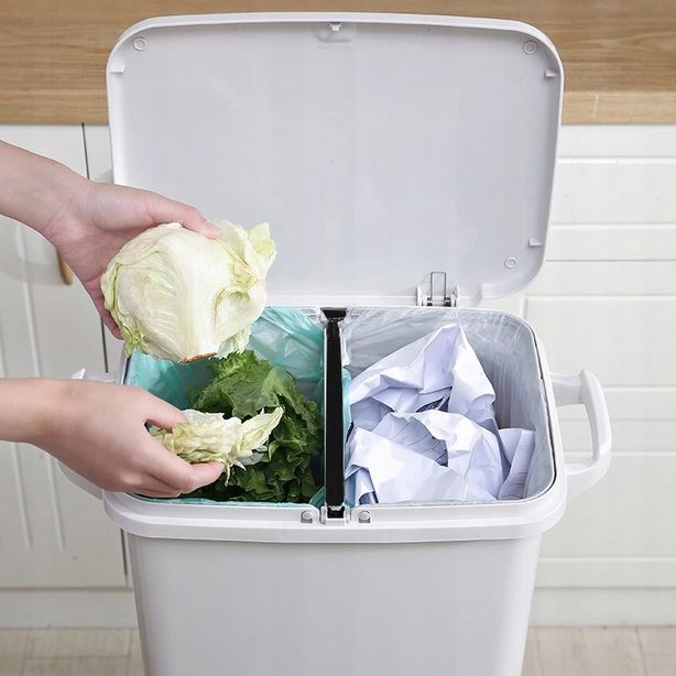 Корзина с несколькими отделениями облегчит сортировку мусора. Он не занимает лишнего места в доме, а благодаря колесам мы легко можем переместить его в нужное место.