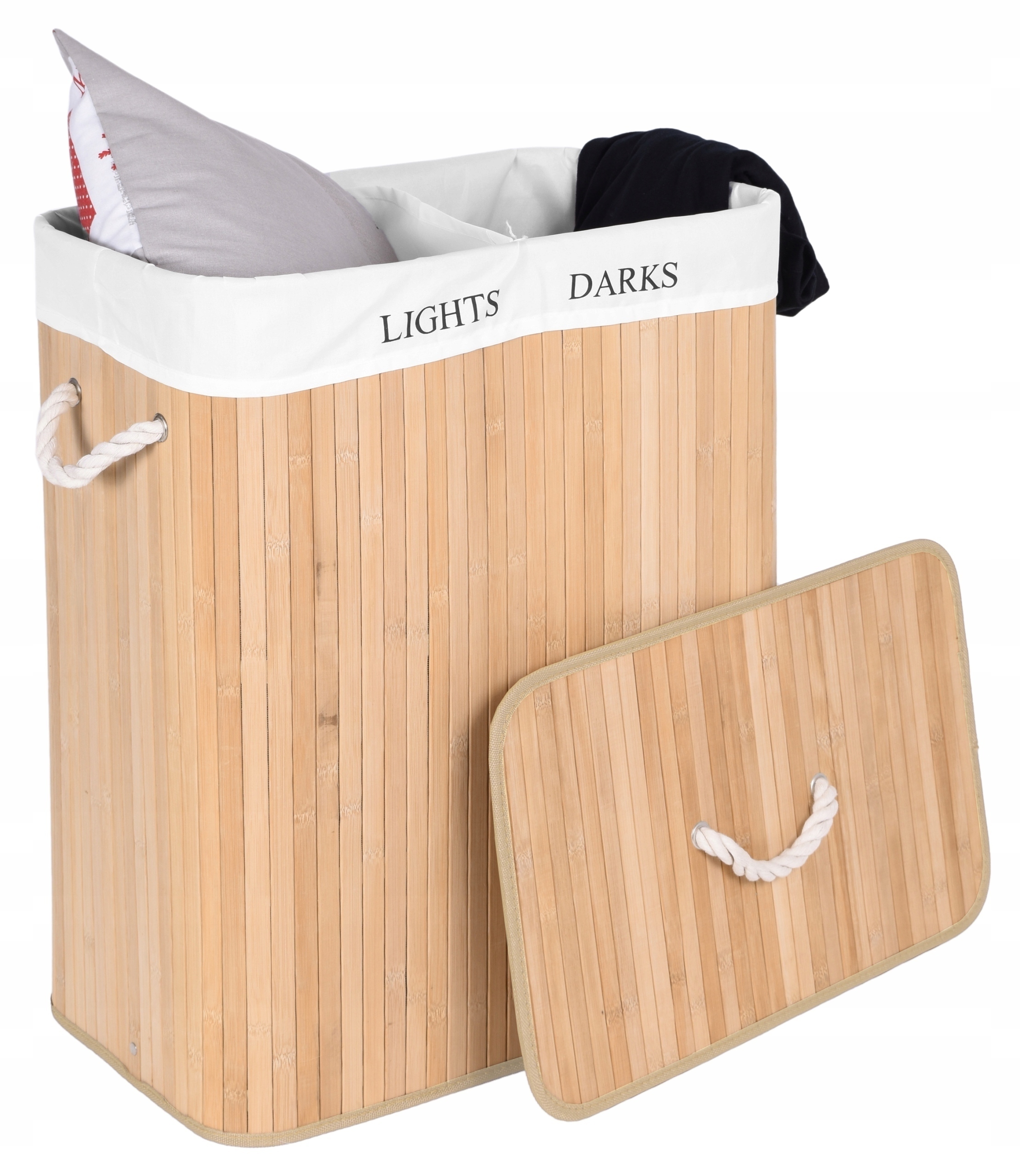 БАМБУКОВАЯ КОРЗИНА ДЛЯ БЕЛЬЯ, ДВУХКОМБОННЫЙ КОНТЕЙНЕР, 100 Л ПРЕМИУМ