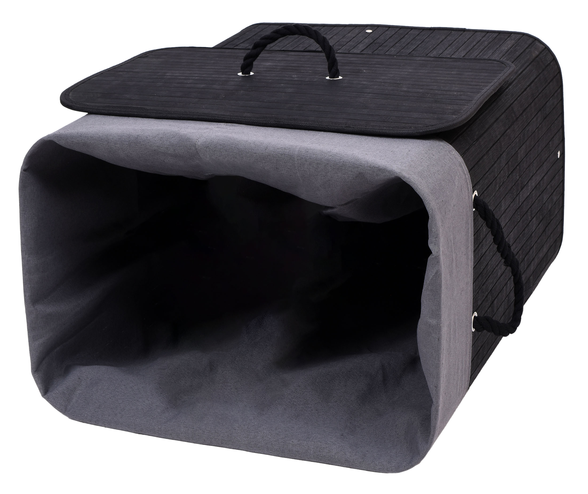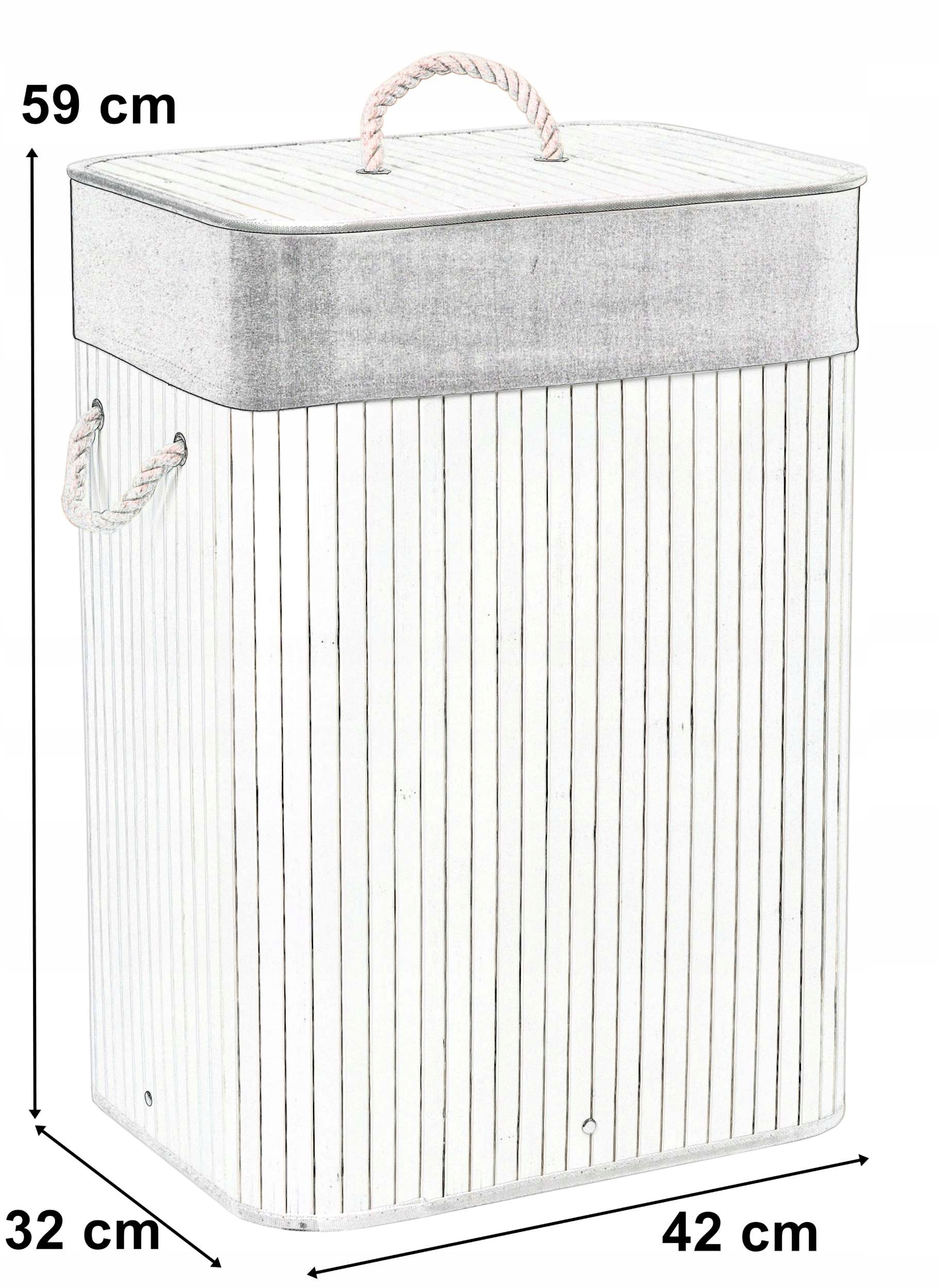 Контейнер закрывается крышкой с ручкой из толстой веревки, благодаря чему содержимое корзины не представляет собой неизящного вида, не говоря уже о неприятных запахах грязной одежды. . Сам контейнер имеет две веревочные ручки по бокам, которые облегчают переноску.