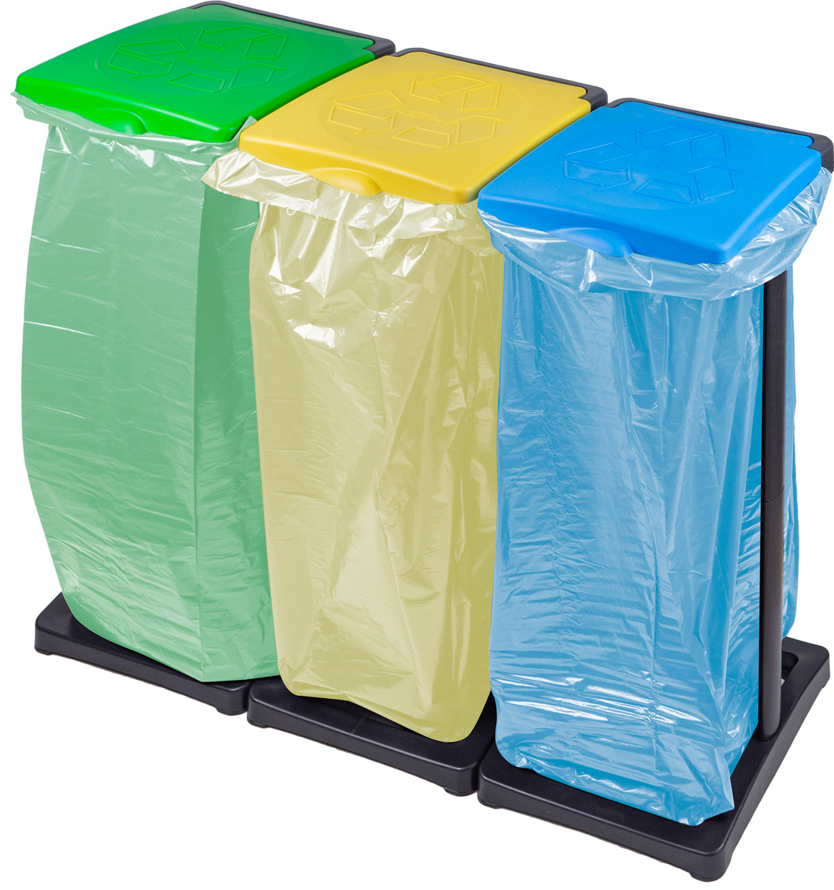 - Стабильная и прочная конструкция позволяет установить 3 сумки емкостью 110 л.
