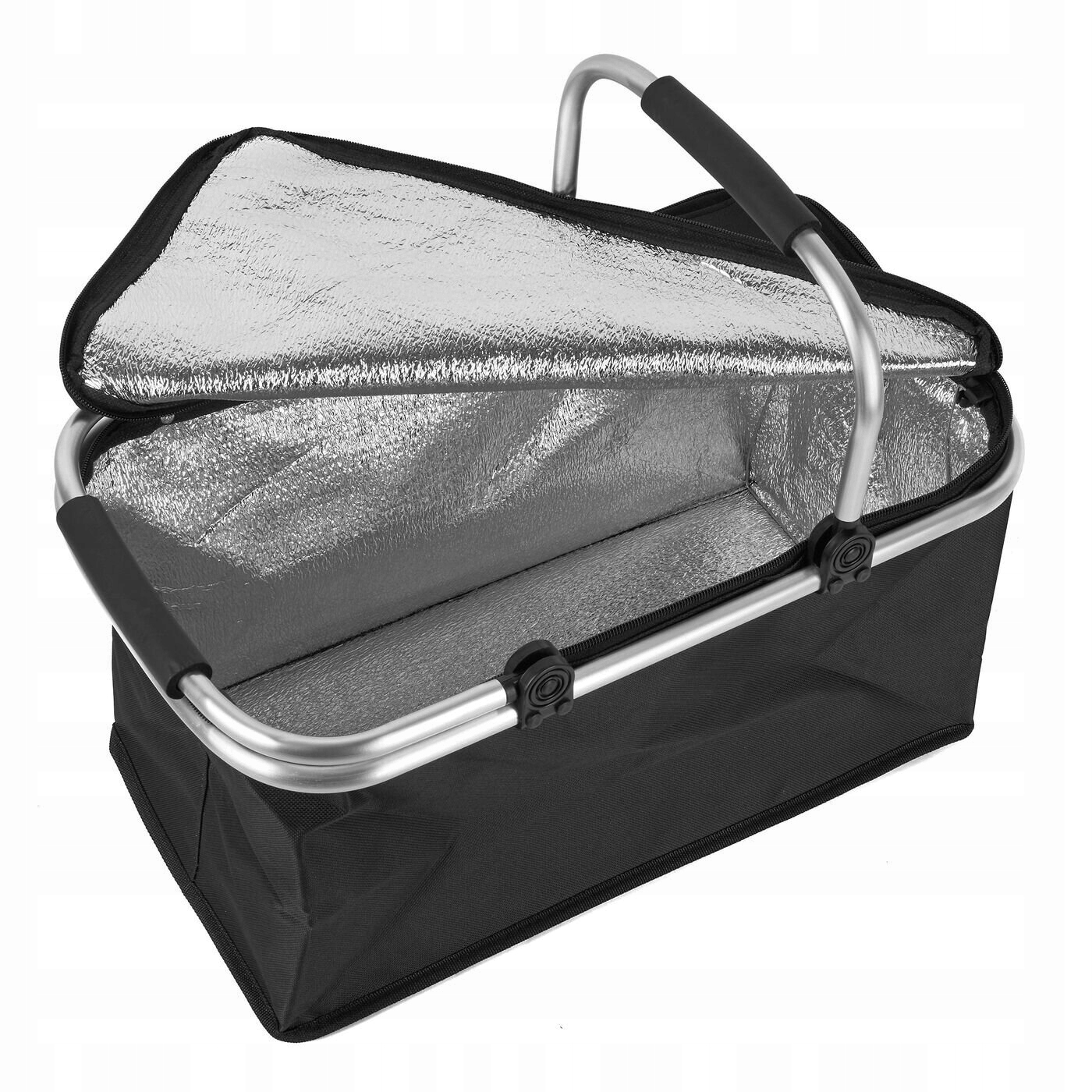 Большинство из них закрываются на молнию. > Именно поэтому термокорзина для продуктов чрезвычайно проста в использовании.