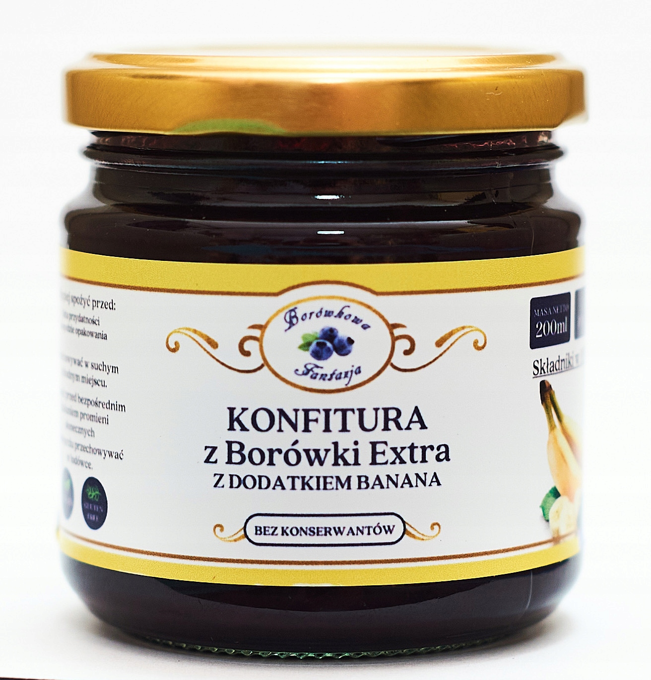 - дополнительный варенье с добавлением банана 200 мл (отличное качество без консервантов 100 г готового продукта было сделано из 115 г черничного фрукта и 10 г)