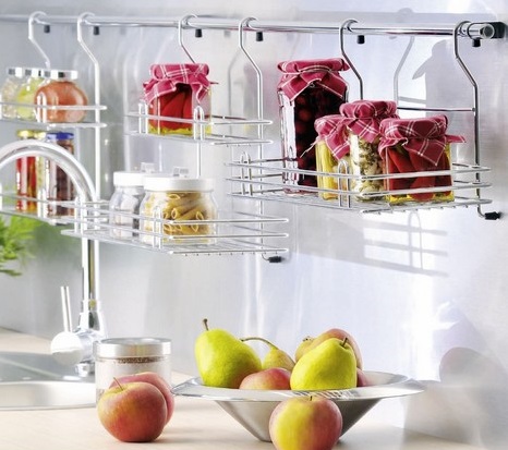 Nна рейлинги, прикрепленные к стенам, можно повесить корзины с различными функциями.